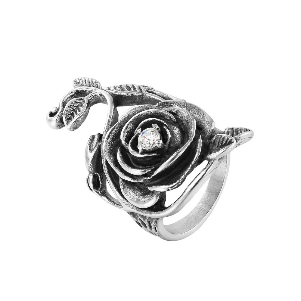 • Fashion Titanium Stainless Steel Personalized Retro Cross Flower Zircon Ring for Men Women