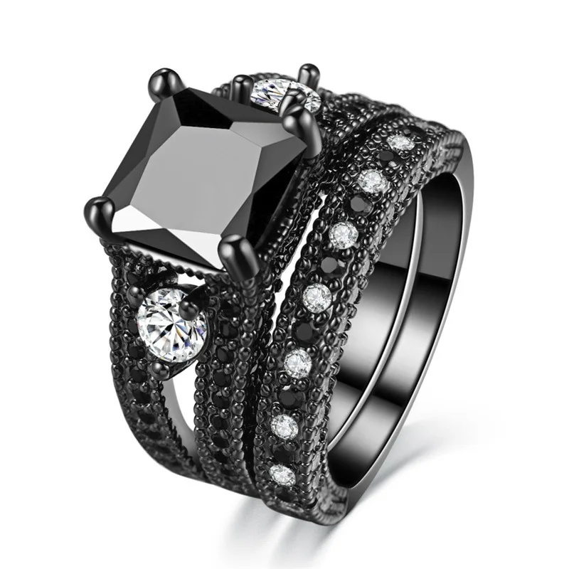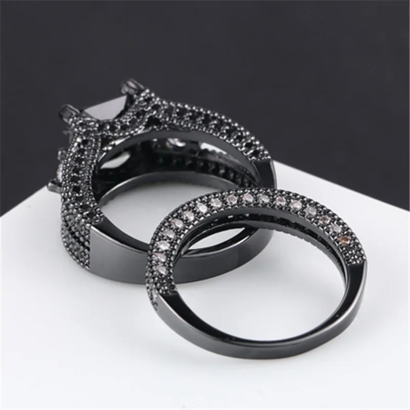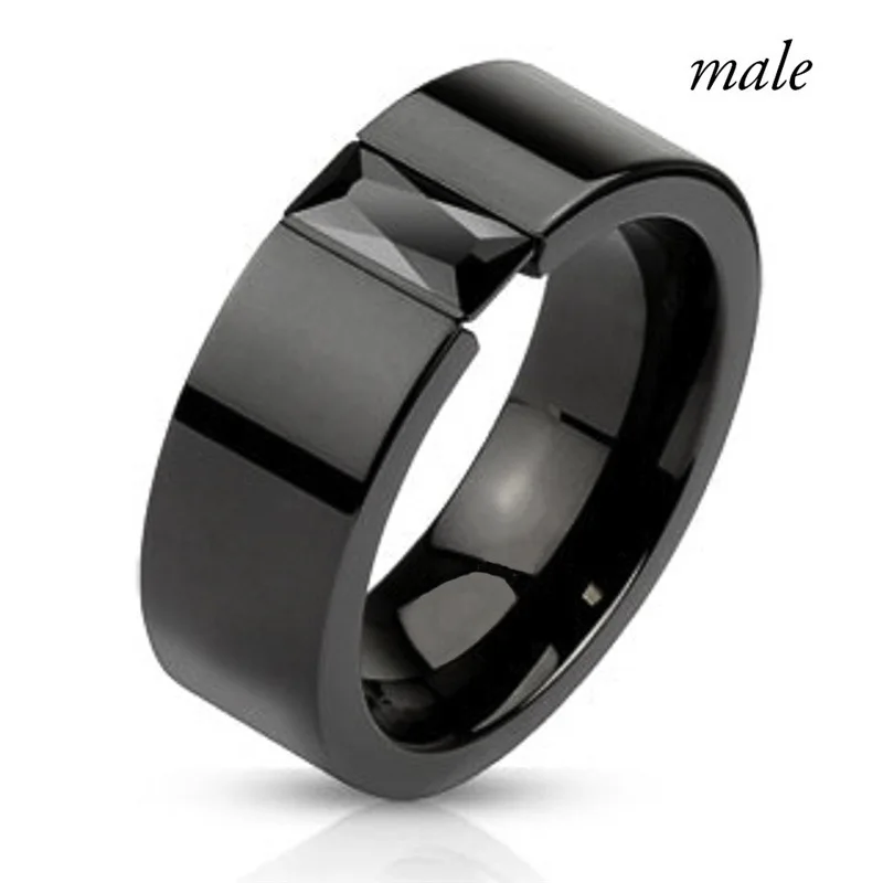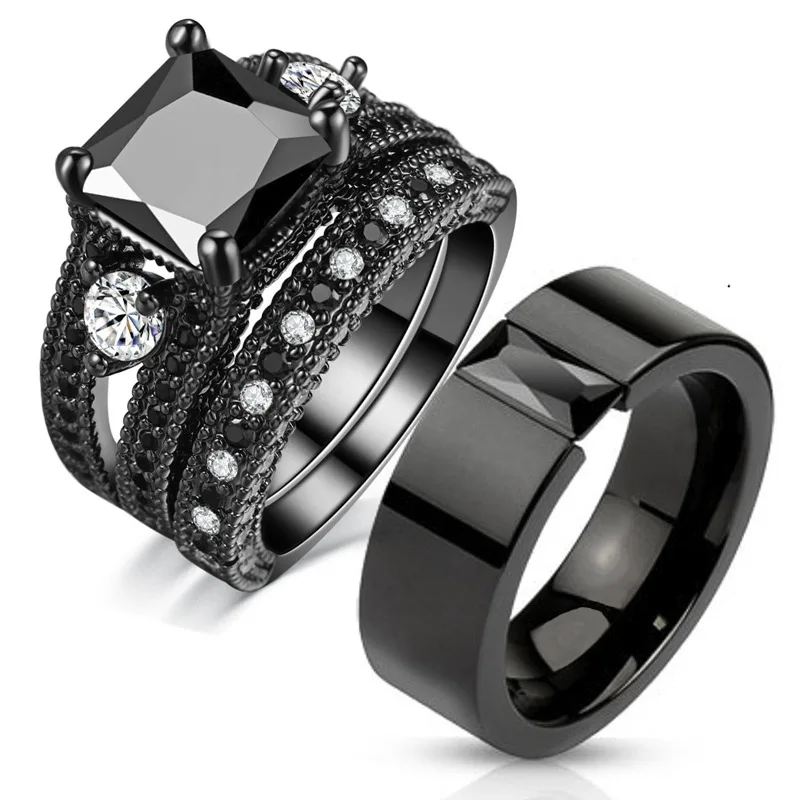 Item Model | Gothic Black plated CZ zircon diamond titanium steel jewelry men and women couples wedding rings |