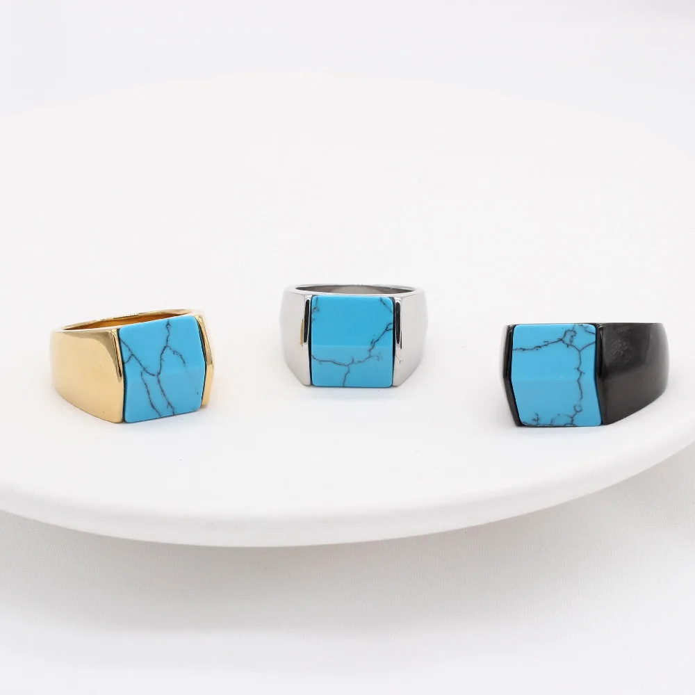 • Guangzhou Fashion Jewelry Blue Turquoise Stone Stainless Steel Ring Couple Ring Man Titanium Steel Ring