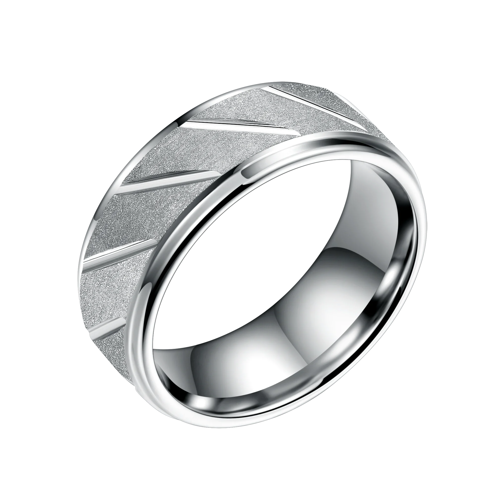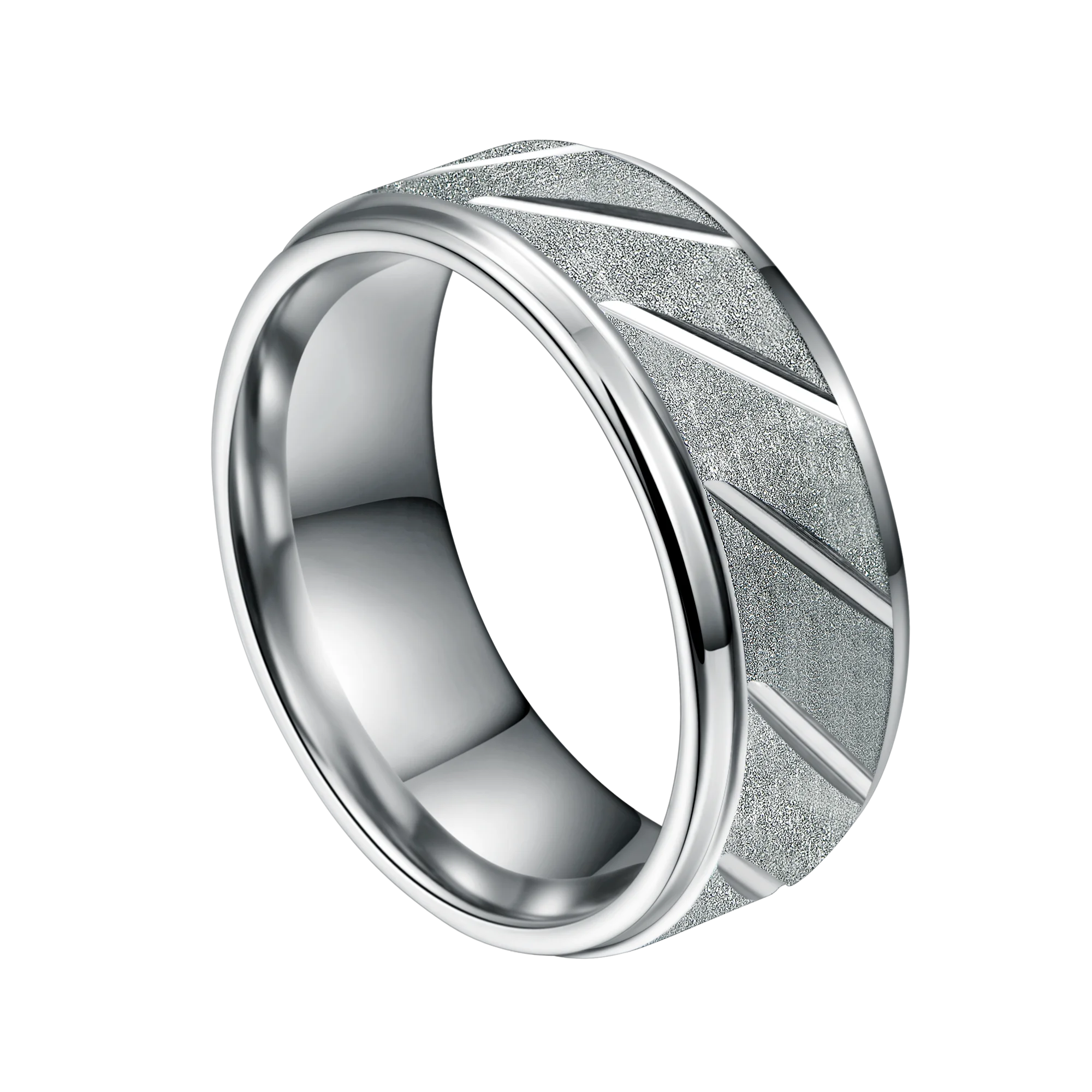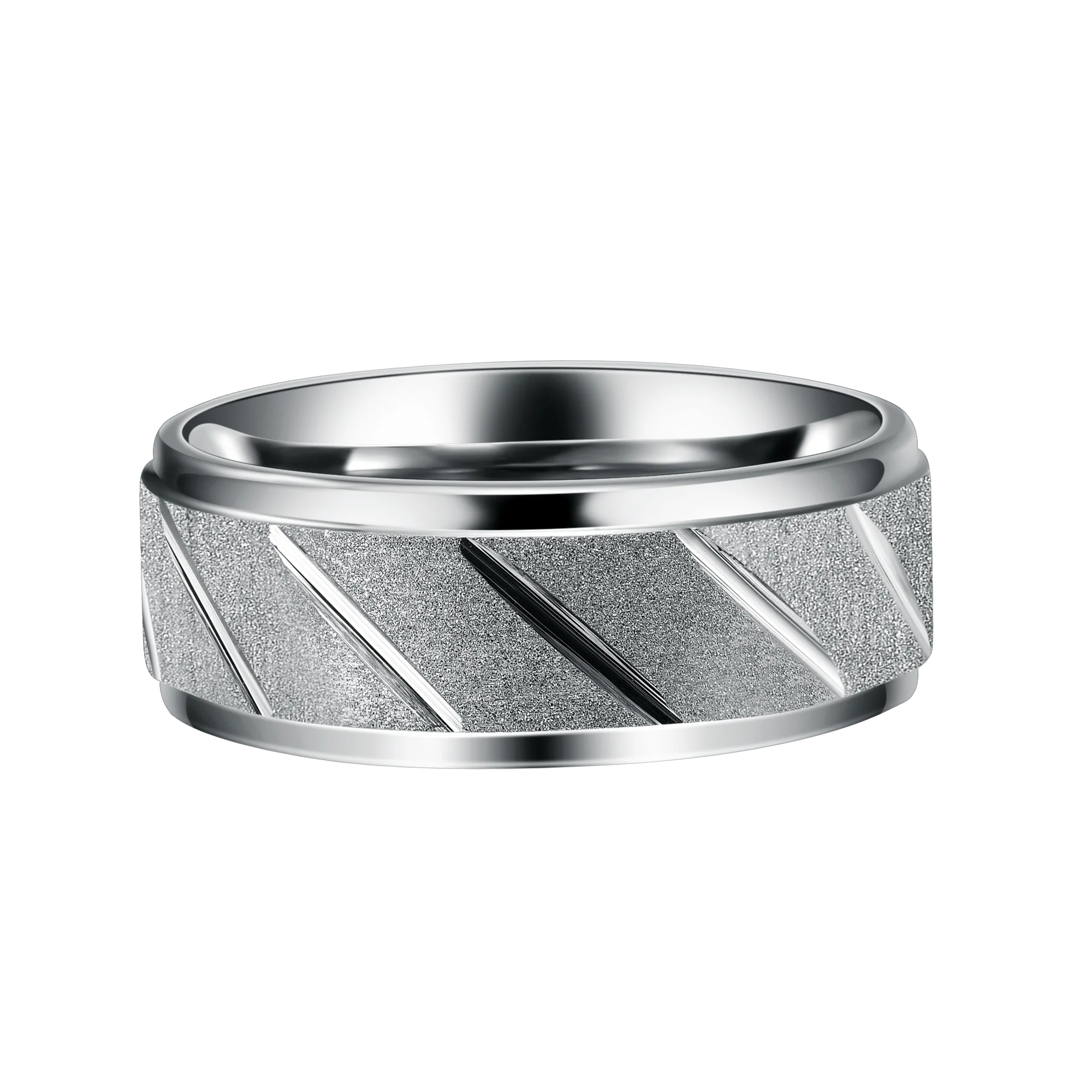 Crafted from high-grade tungsten carbide steel, this ring features a precise 8mm width finished with a silver plating and distinct grooved stepped edges design. The material’s notable hardness guarantees superior scratch resistance, while the channel setting technology enhances design robustness. Weight per unit is approximately 0.020 kg, supporting consistent quality control for mass production orders. The ring’s nickel- and cobalt-free composition aligns with international compliance standards, ensuring reliability in sensitive skin applications. Customizable options for plating (rose gold, gold, silver) and widths enable tailored solutions for wholesale tungsten rings and OEM clients.