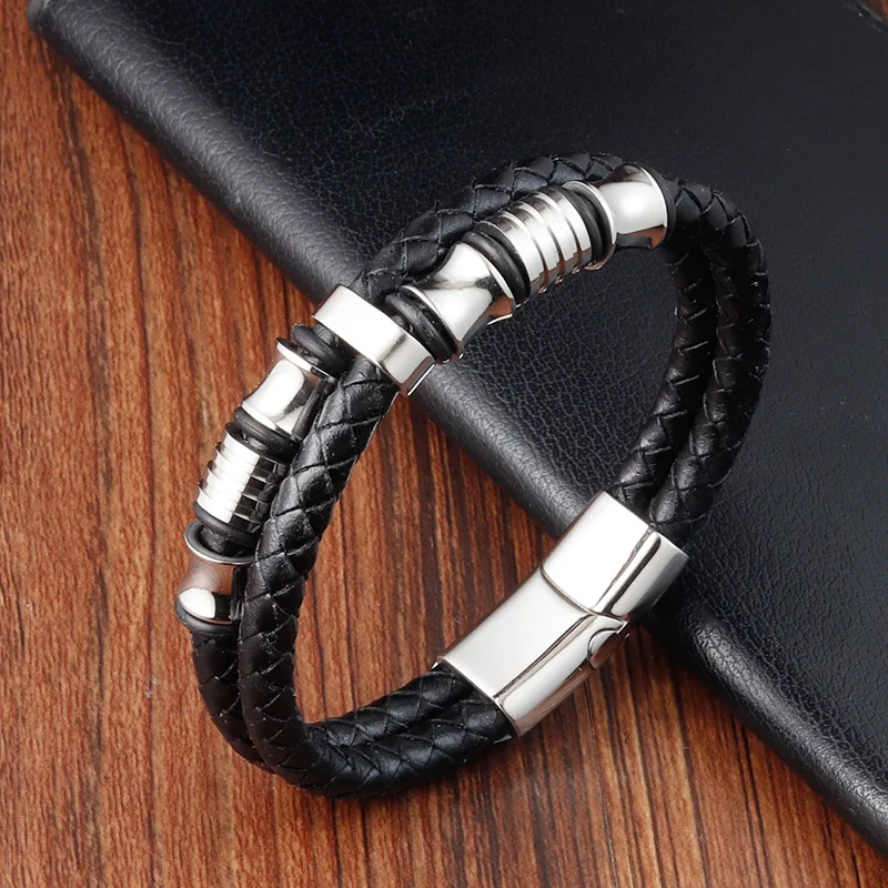 Item Model | Handmade Black Leather Rope Cowhide Men Braided Bracelet Boy Leather Bracelets |