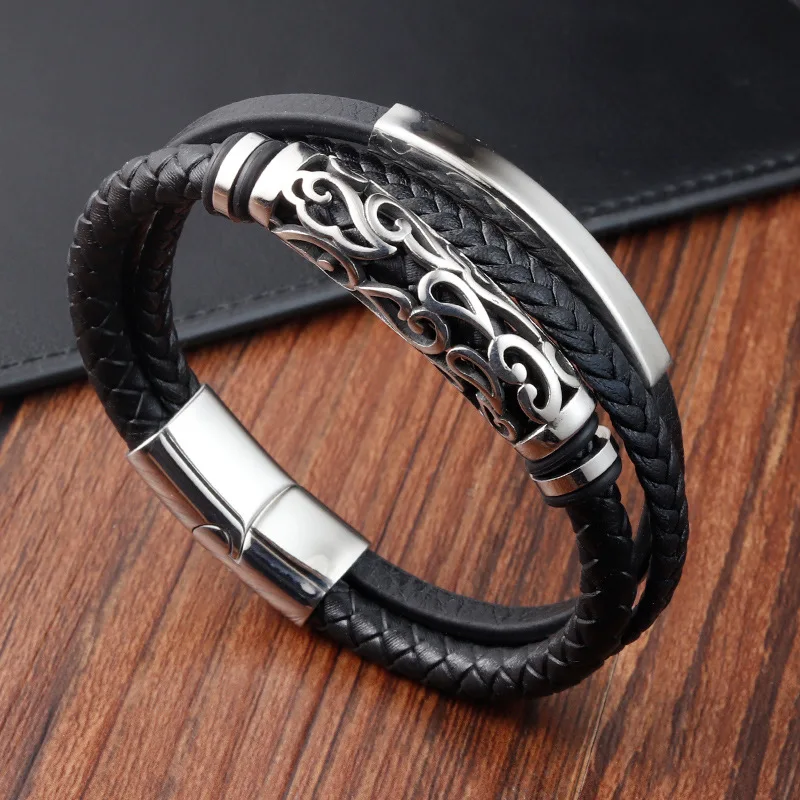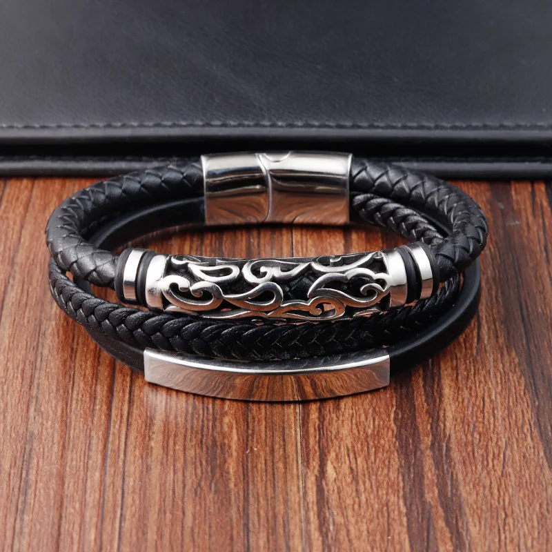 Item Model | Custom bracelets Men's Jewelry Stainless steel handmade leather bracelets men |