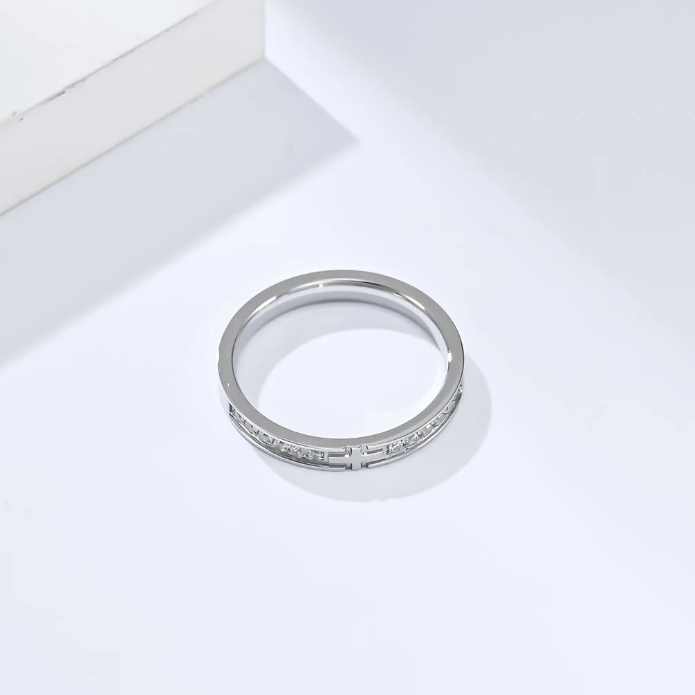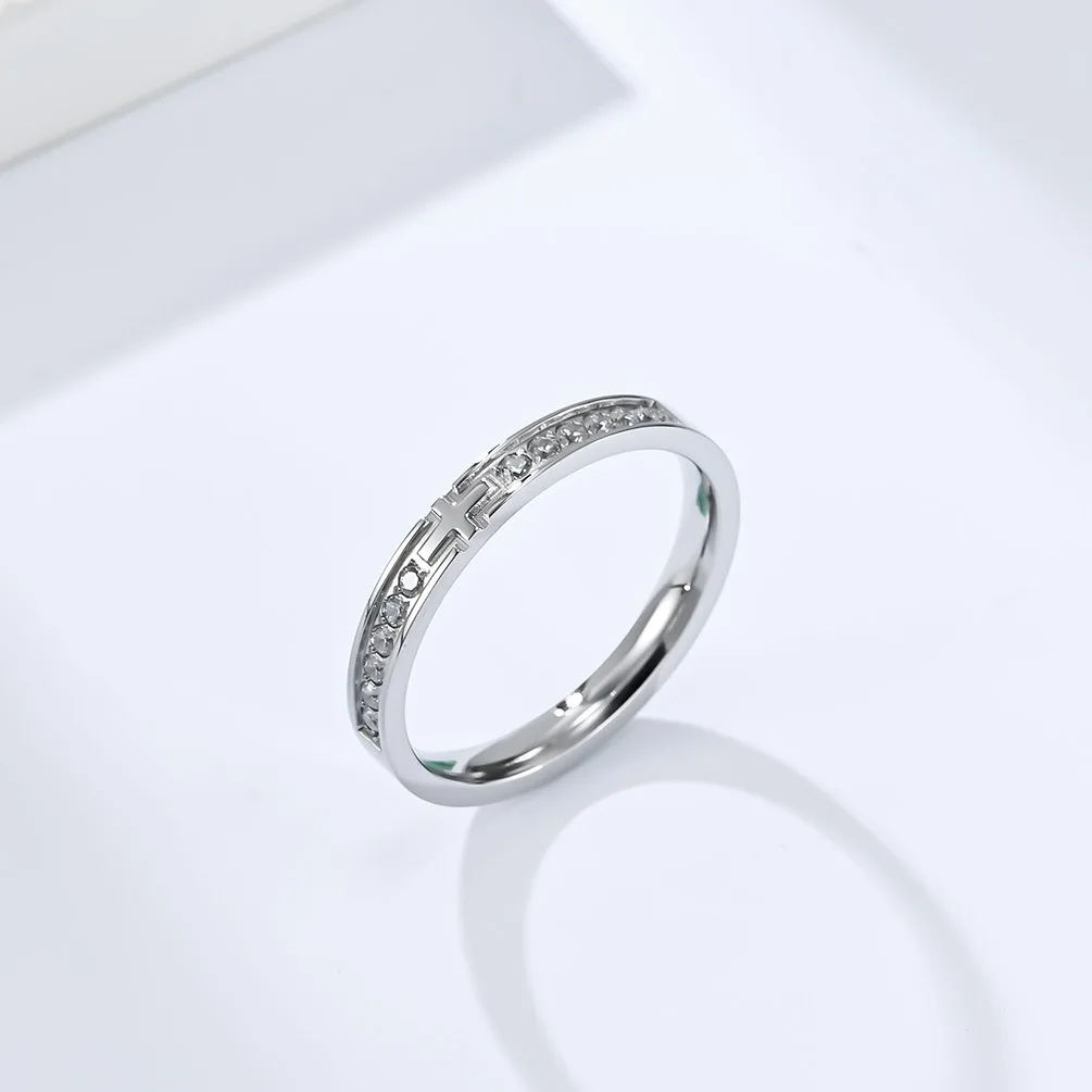 • High-End 18K Gold-Plated Stainless Steel Ring Cubic Zirconia Cross with Gemstone for Parties and Anniversaries