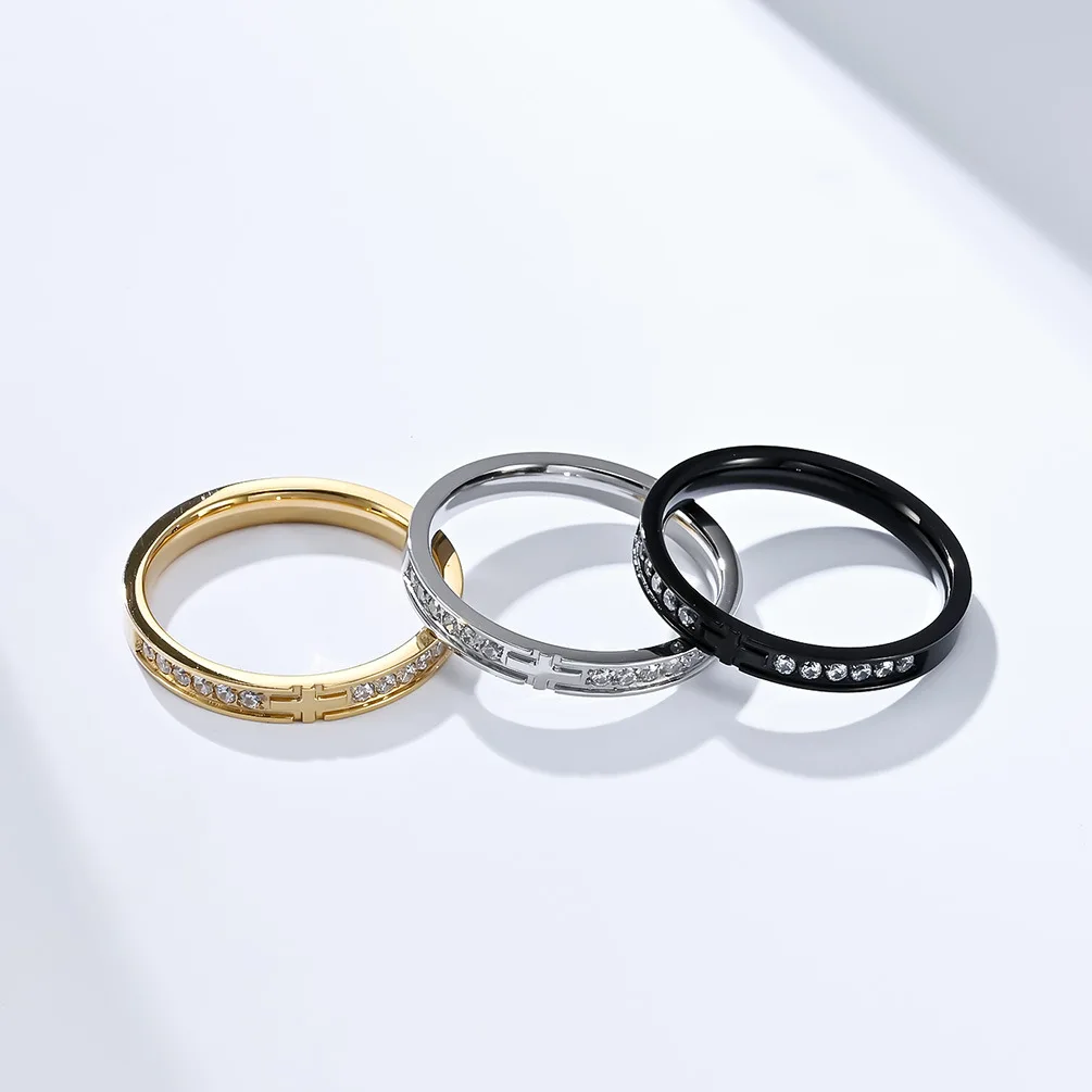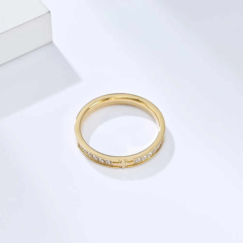 High-End 18K Gold-Plated Stainless Steel Ring Cubic Zirconia Cross with Gemstone for Parties and Anniversaries