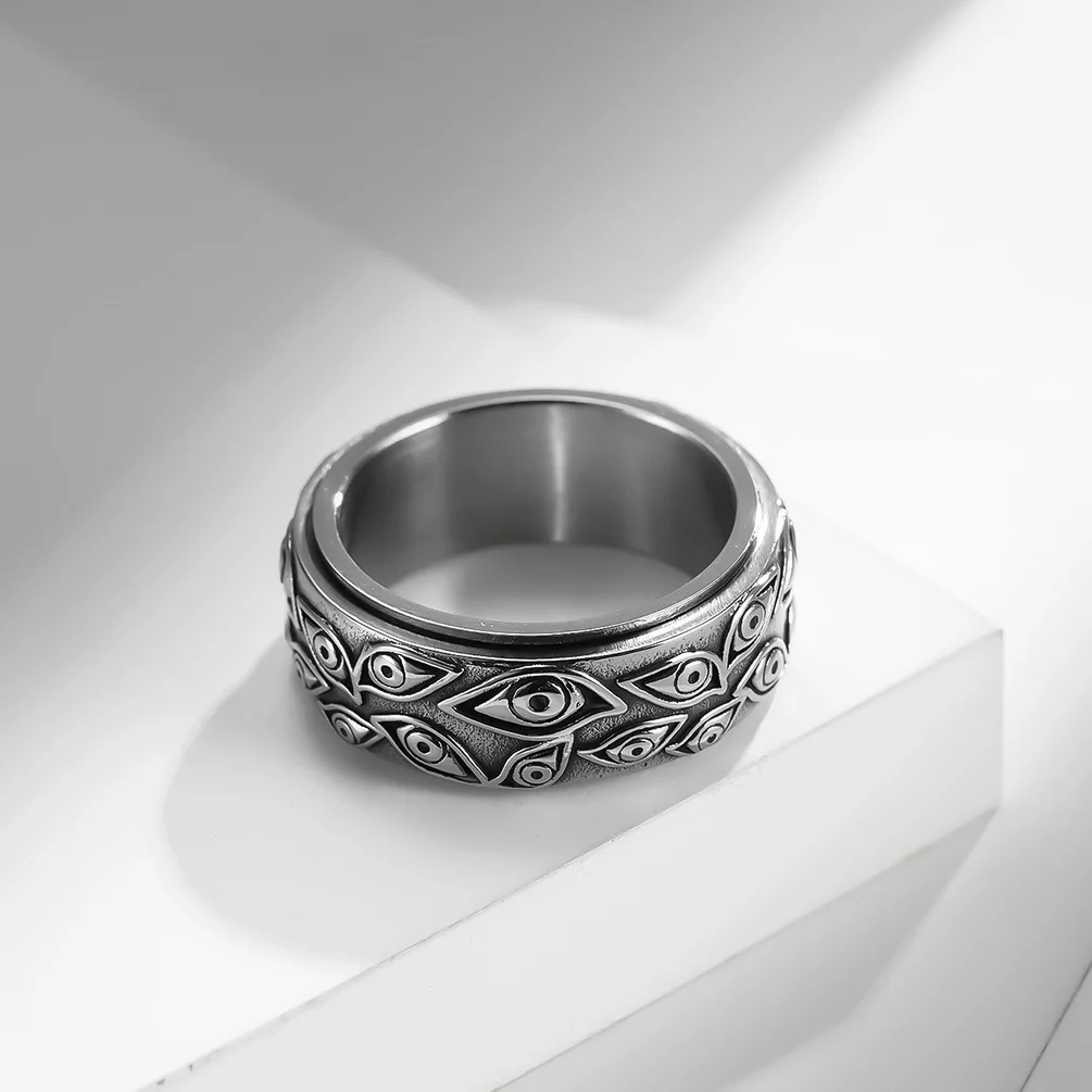 • High Quality 9mm Stainless Steel Eye of God Vintage Eyes Ring Rotatable Fidget Goth Eye Spinner Rings for Men Women