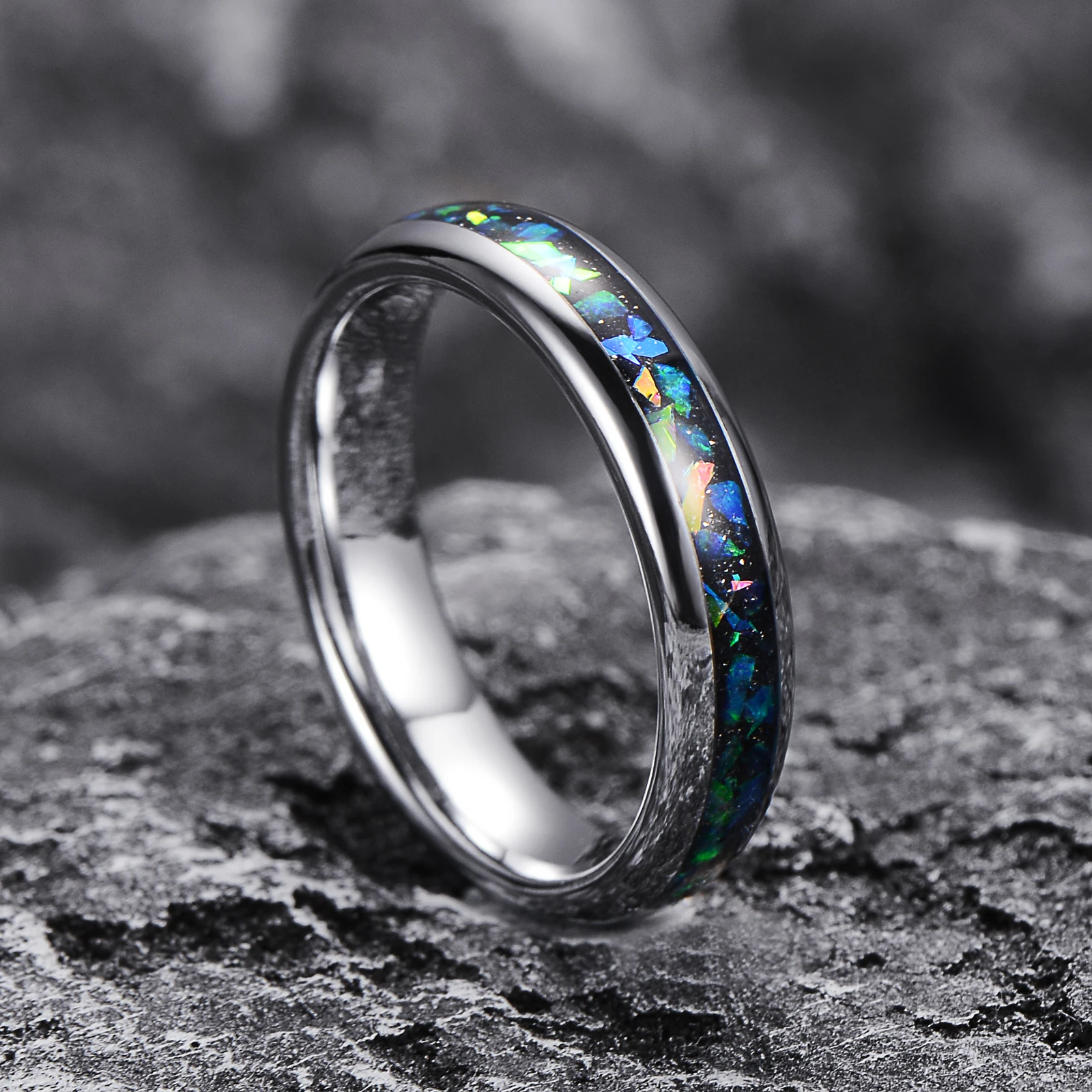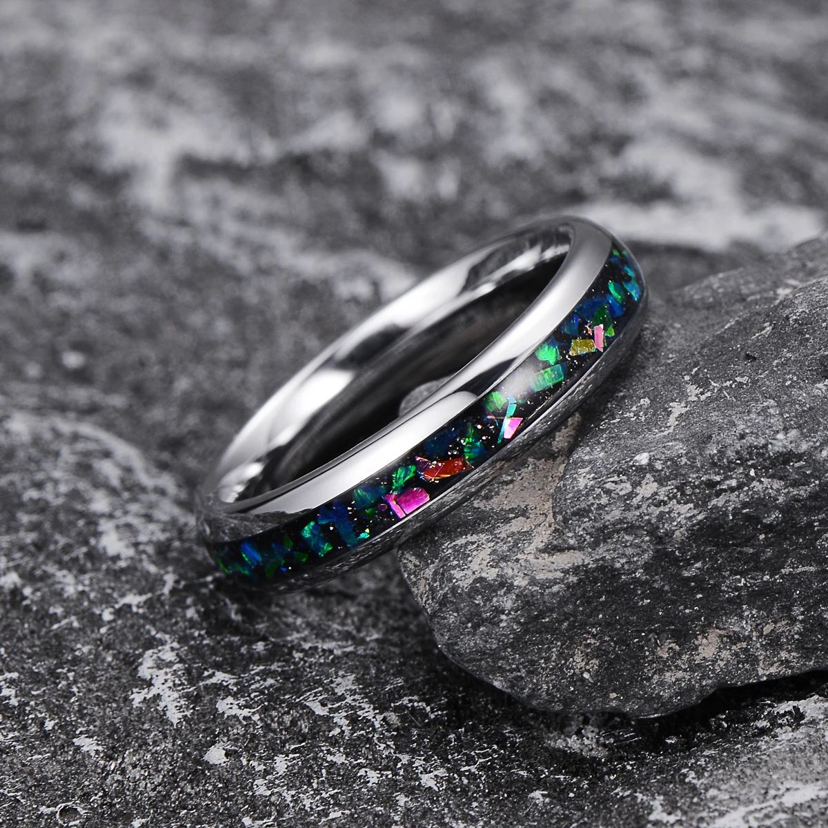 • High Quality in Stock Jewelry Colorful Fragments Inlay Domed Polished Shiny 4mm Tungsten Ring for Men Women Comfort Fit