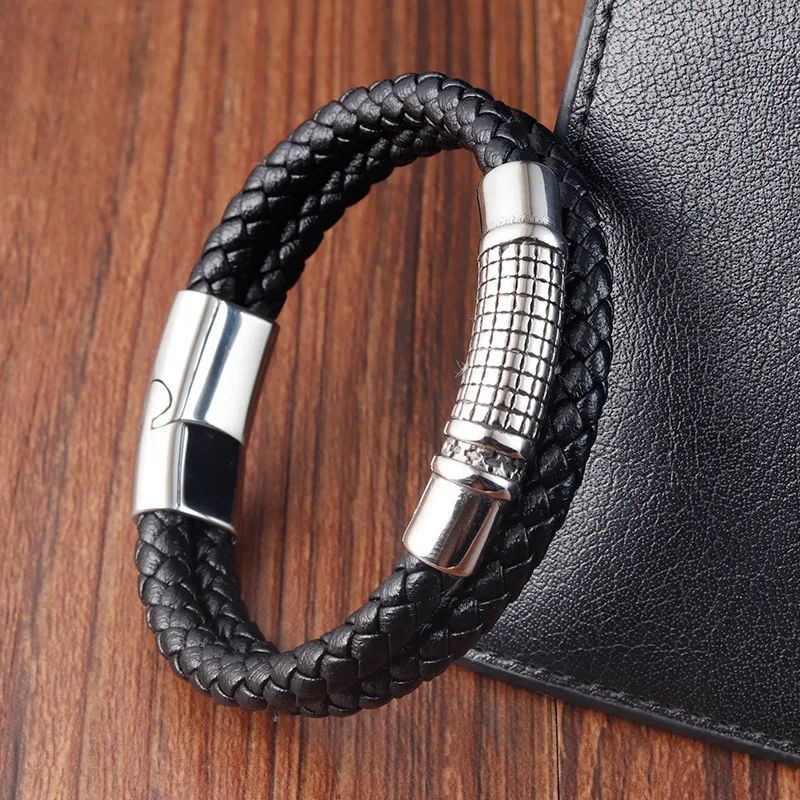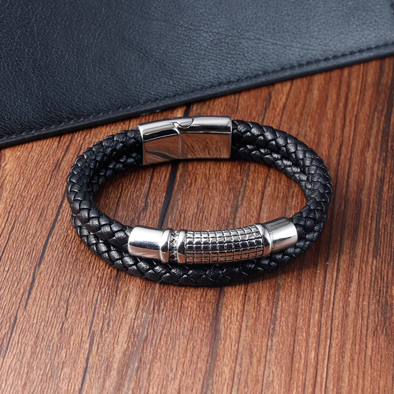 Item Model | High Quality men luxury fashion jewelry rope leather bracelet with stainless steel and leather bracelet |