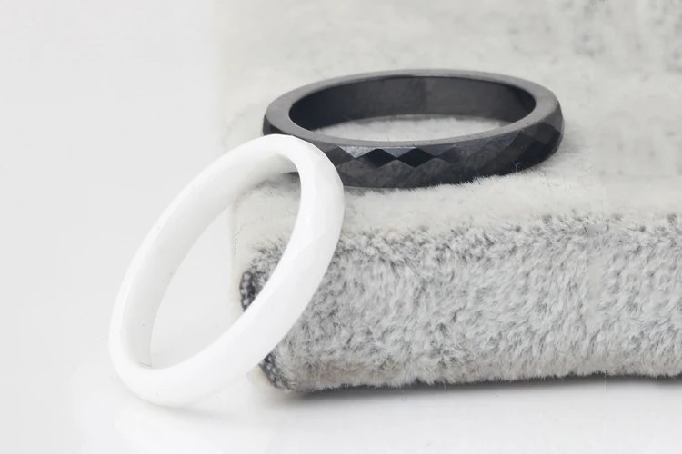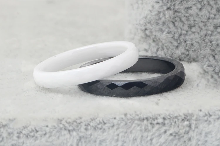 Item Model | 3mm Faceted Black and White Simple Ceramic Couple Ring |