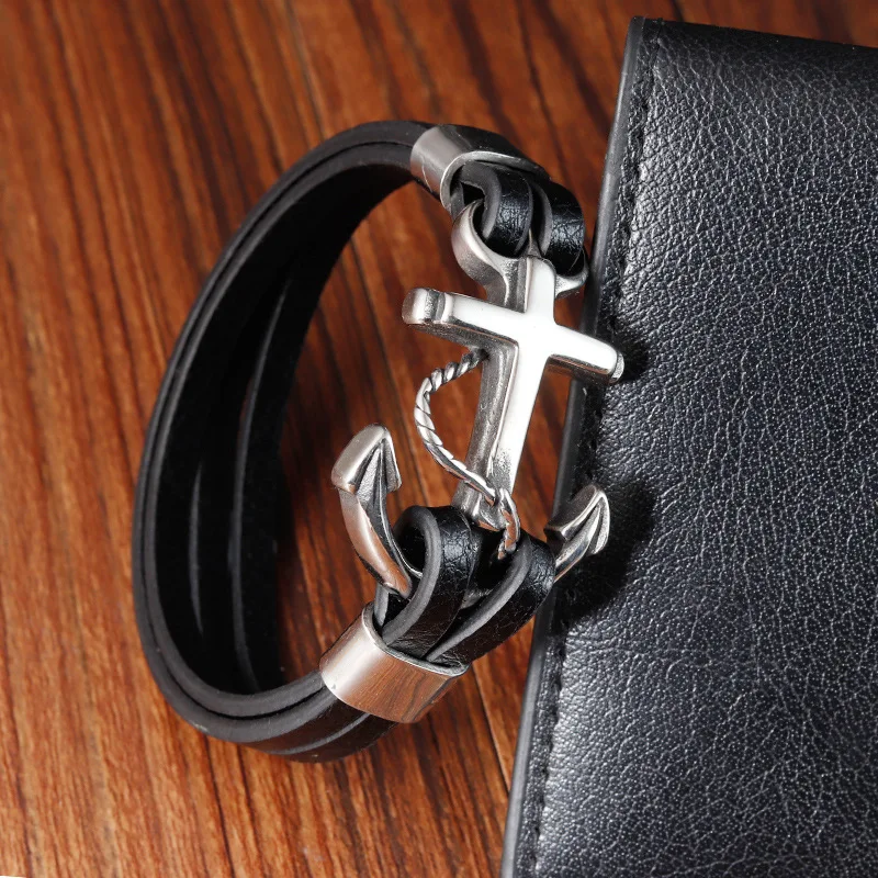 Item Model | Hot selling Men Leather Bracelet Boat anchor Bracelet Leather for engraving logo men's leather bracelet Retro style |