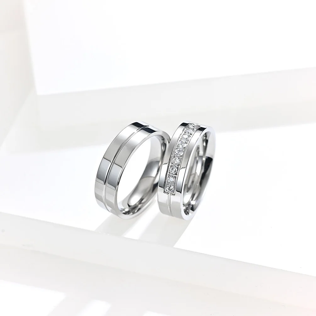 Item Model | Hot Selling Zircon Stone Women Rings Men Wedding Band Stainless Steel Jewelry Silver Gold Wedding Ring Couple Wedding Rings |