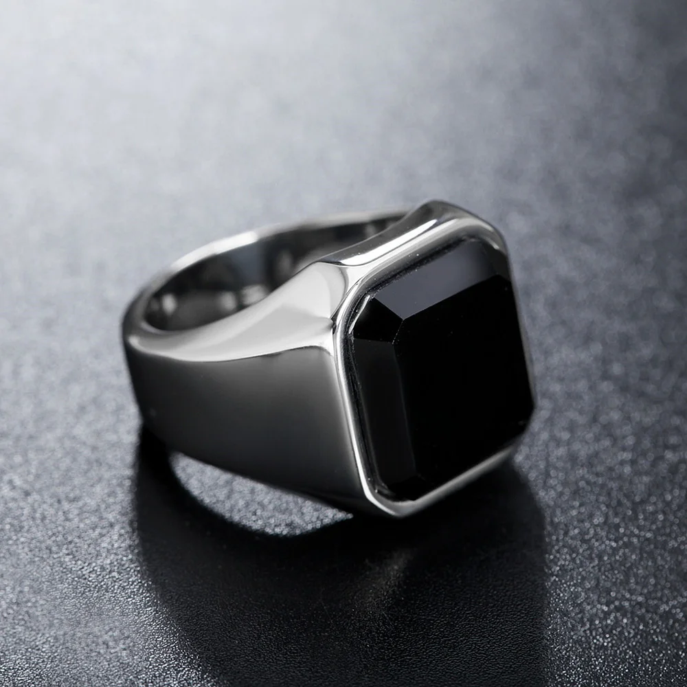 Item Model | Hottest Men Jewelry Mens Stainless Steel Ring Black Onyx Gemstone Ring Fashion Jewelry Rings |