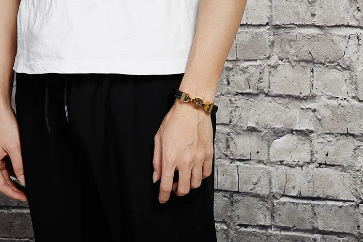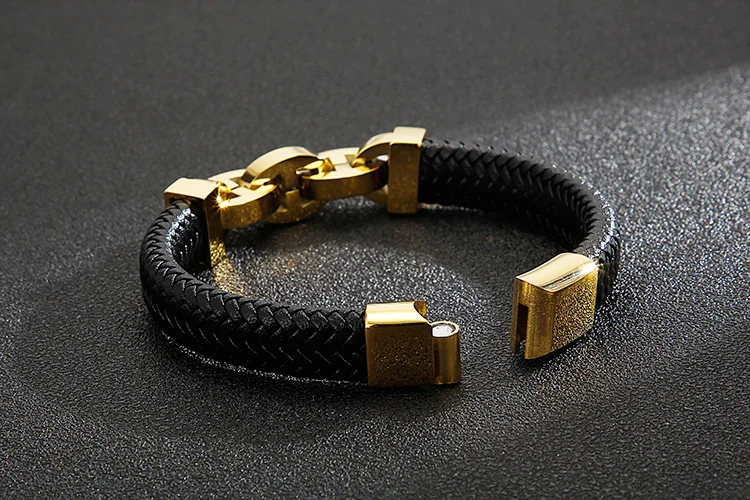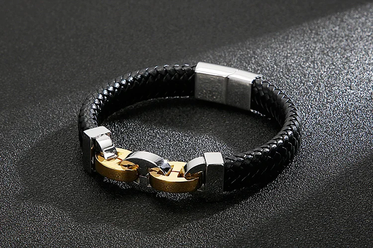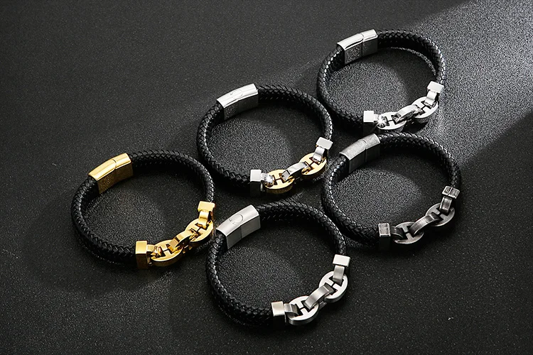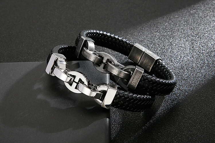 In Stock Fashion Simple Cowhide Rope Splice Stainless Steel Men's Bracelet
