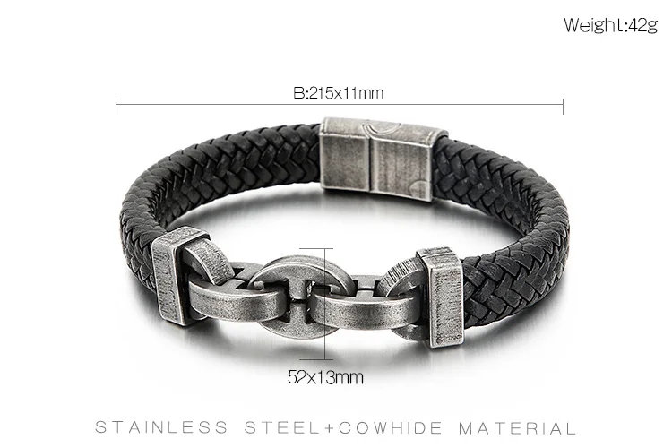• In Stock Fashion Simple Cowhide Rope Splice Stainless Steel Men's Bracelet