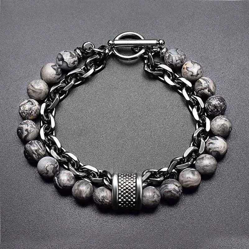 Item Model | In Stock Stainless Steel Adjustable 8mm Tiger Eye Stone Spacer Bracelet 21CM Men's Beaded Bracelet Wholesale |