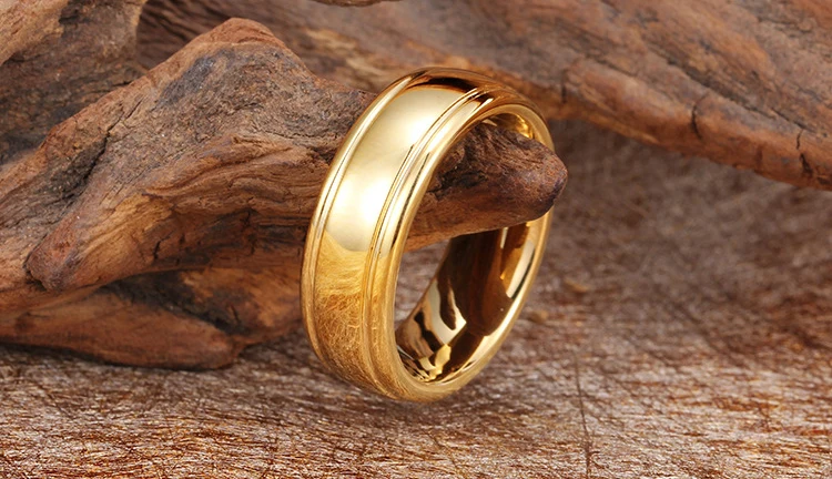 The Latest Design Fashion 6mm 8mm Cheap Gold Ring for Men offers durable tungsten rings with high-polish finishes and adjustable sizing, tailored for distributors seeking competitive wholesale tungsten rings with stylish appeal.