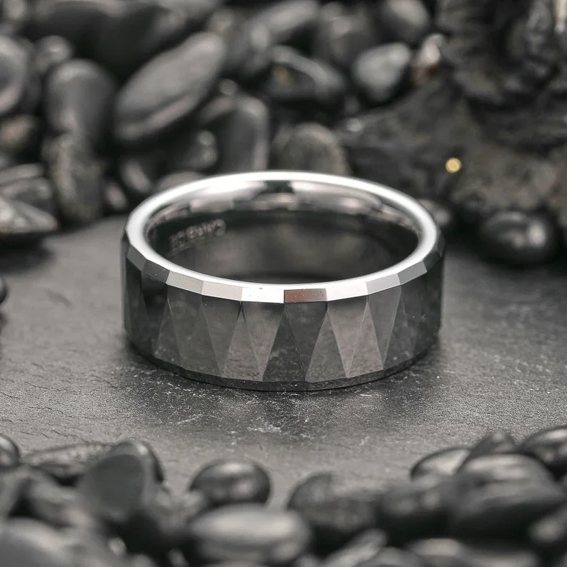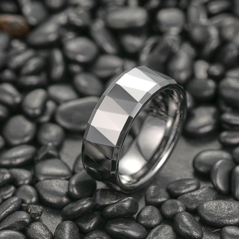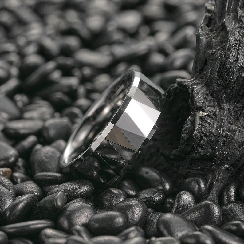 Item Model | Lower Price Tending High Polished Faceted 8mm Silver Tungsten Steel Rings For Men Tungsten Wedding Rings Mens Jewelry |