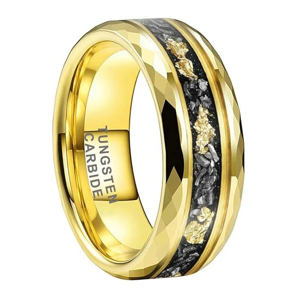Item Model | Luxury gold plated hammered 8mm men tungsten ring with groove inlay stone and gold foil wedding band ring |