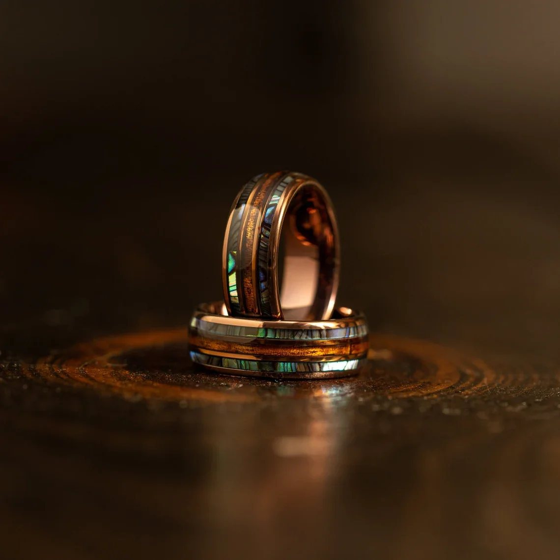 Item Model | Luxury Hawaii Style 8MM 18K Rose Gold Tungsten Band Rosewood Abalone Tungsten Ring Rings For Men Wedding Rings Fashion Jewelry |