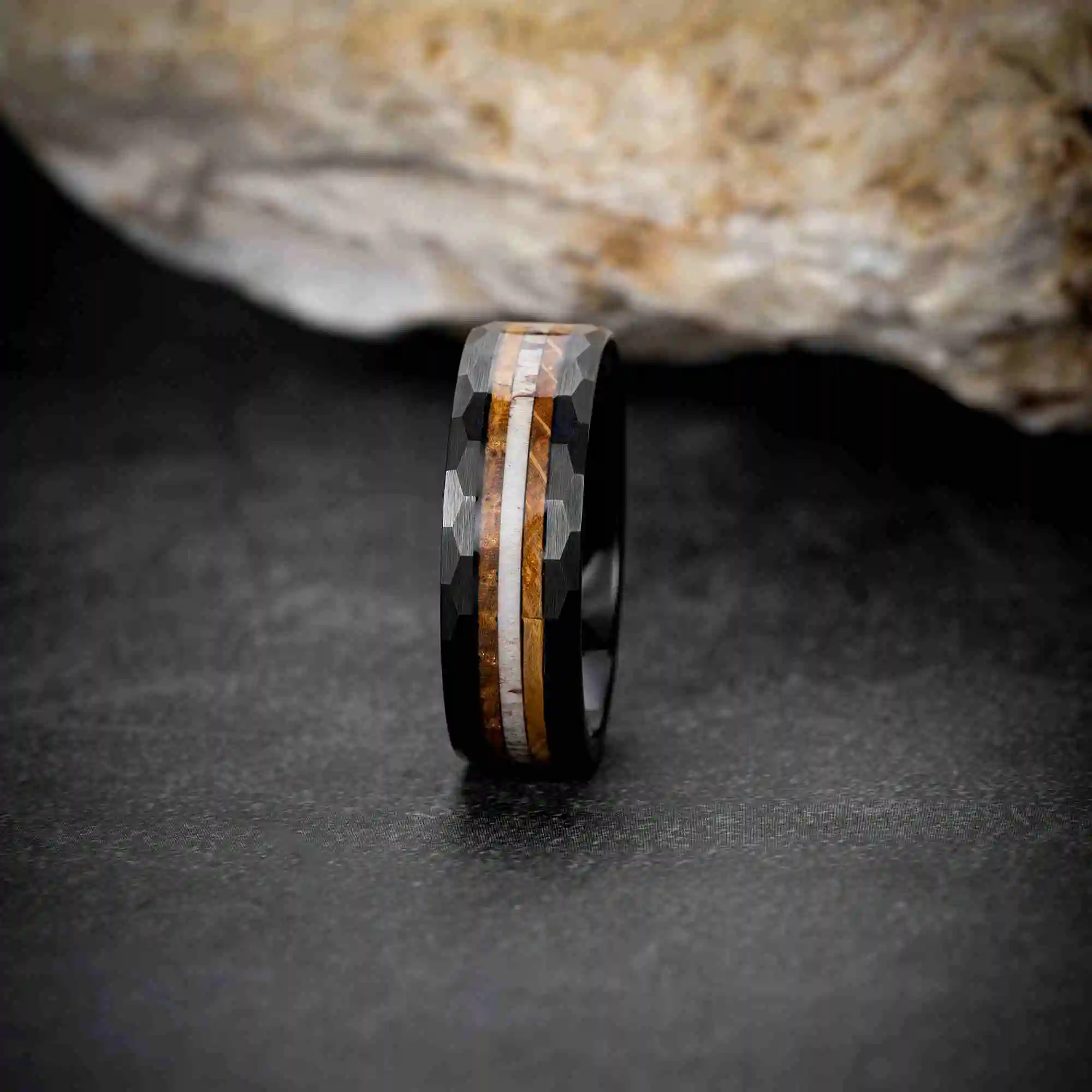 Item Model | Luxury men ring tungsten carbide ring classic 8mm men black plated inlay wood Unisex tungsten ring fashion jewelry confirm fit |