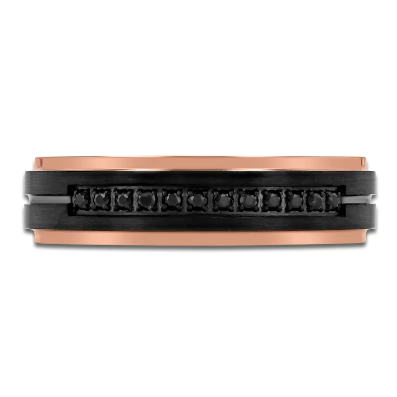 Item Model | Luxury Men's Jewelry Black and Rose Gold Plated Cz Diamond Inlay Men and Women Wedding Band comfort It Ring |