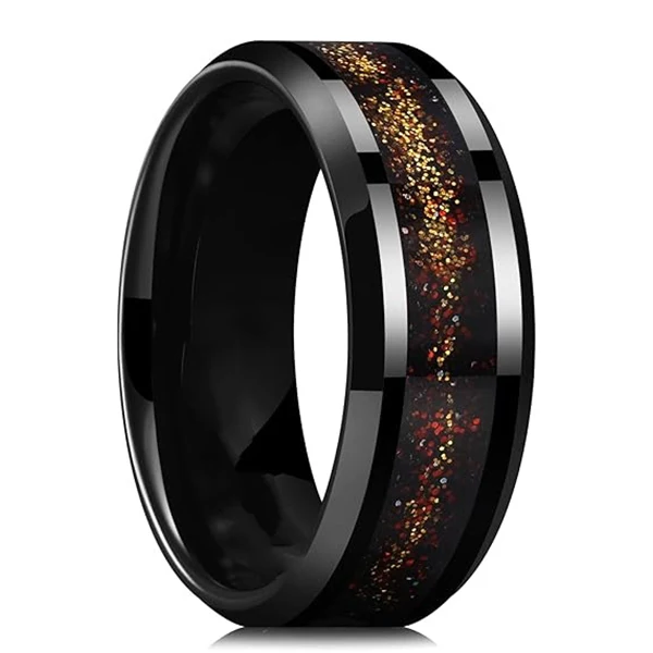 Item Model | fashion men jewelry luxury tungsten carbide ring black plated tungsten ring inlay gold foil inlay men wedding band ring |