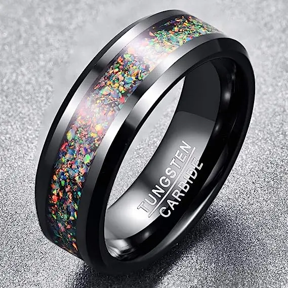 Item Model | Luxury stone inlay tungsten carbide ring galaxy opal tungsten ring for men |