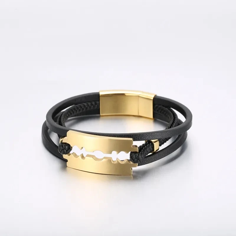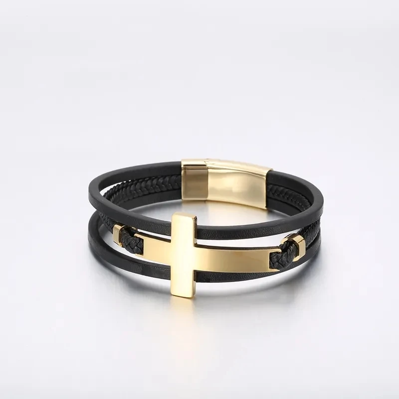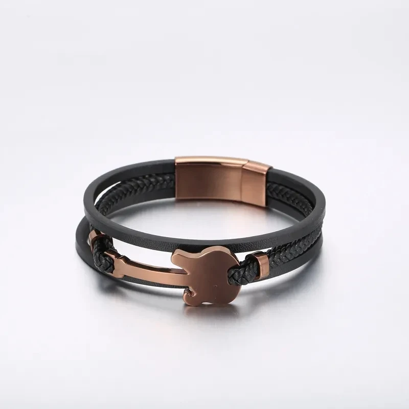 Item Model | Men's Multi-Strand Braided Leather Chain Bracelet with Magnetic Closure |