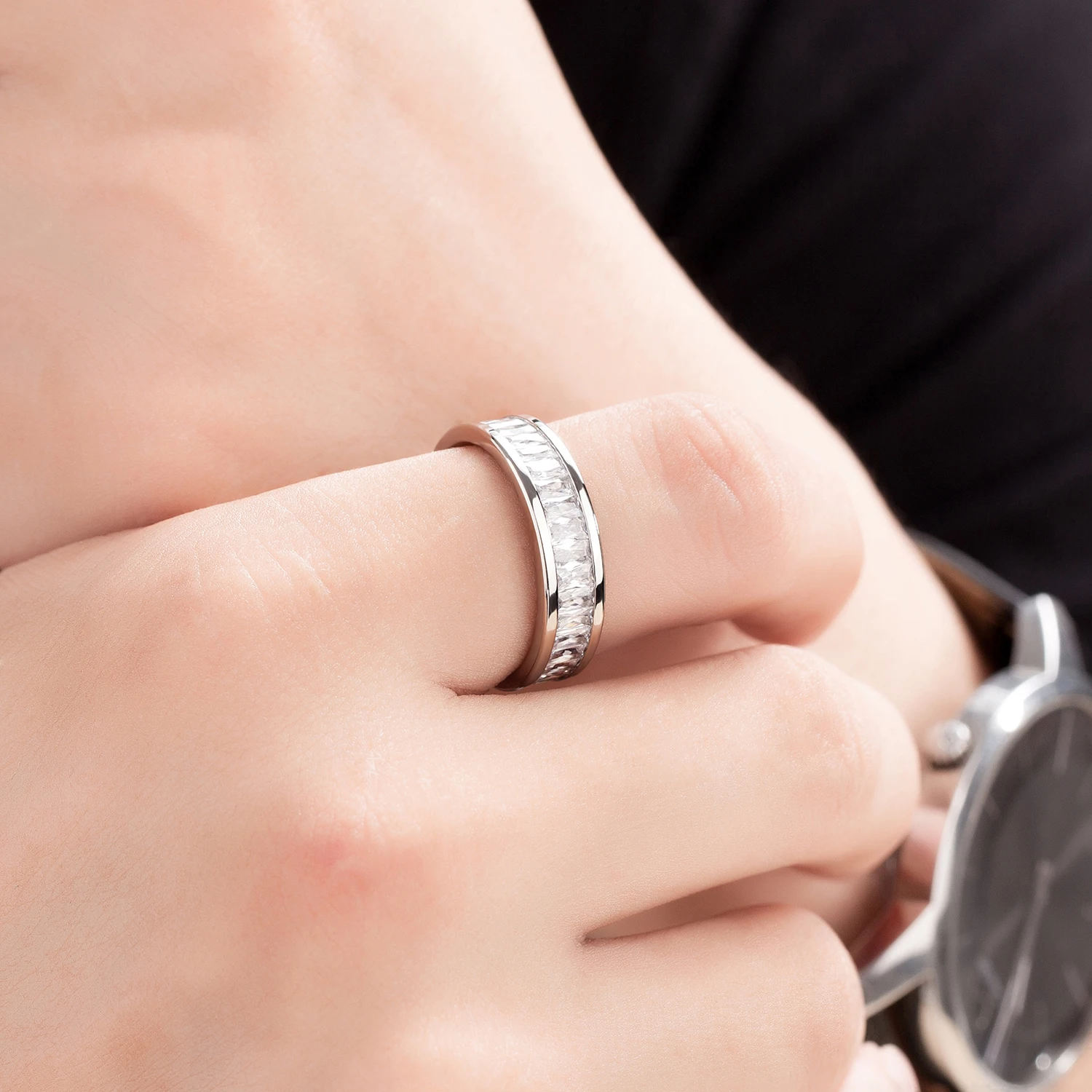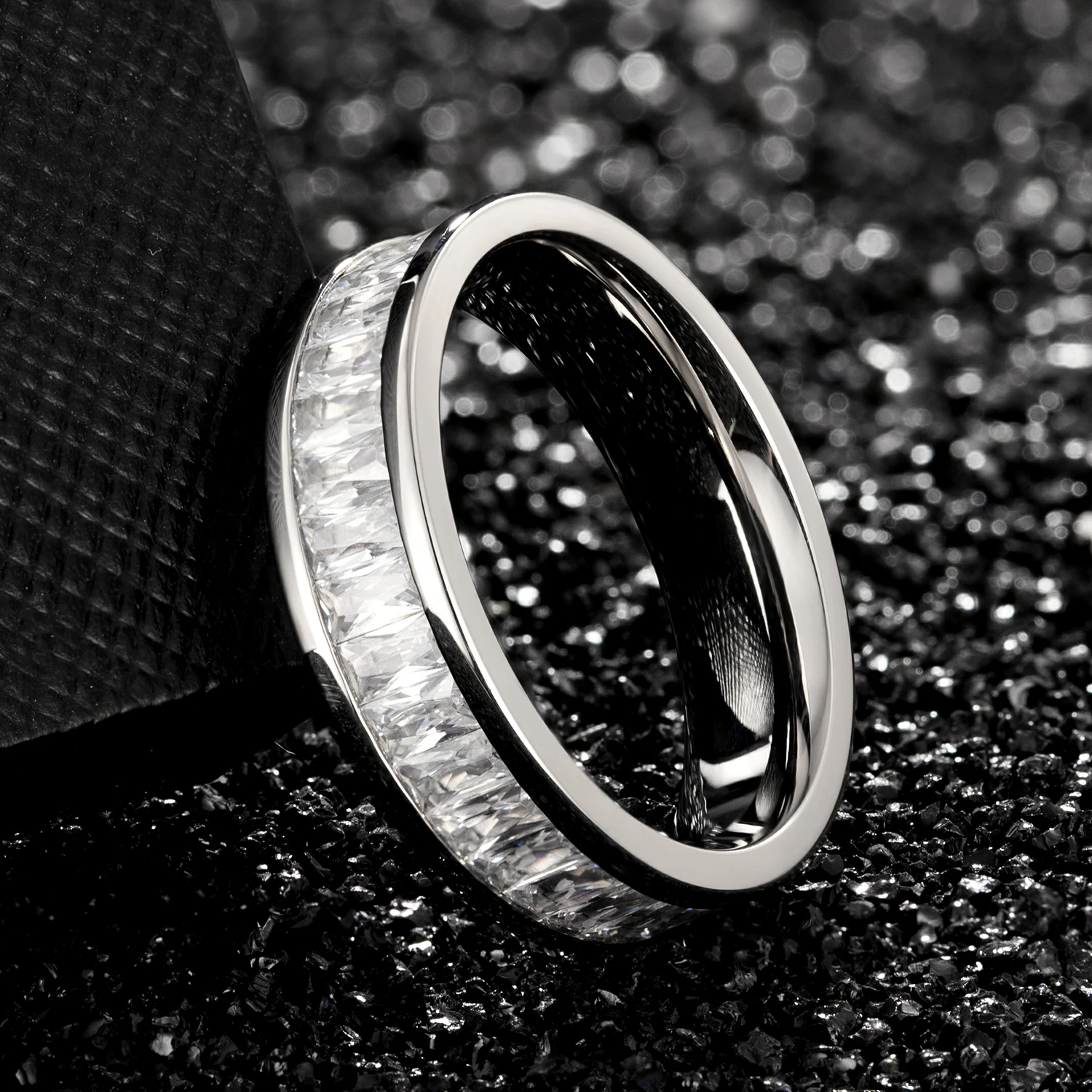 Manufacturer Custom Zircon Crystal Inlay 8mm Stainless Steel Fashion Cubic Zirconia Rings