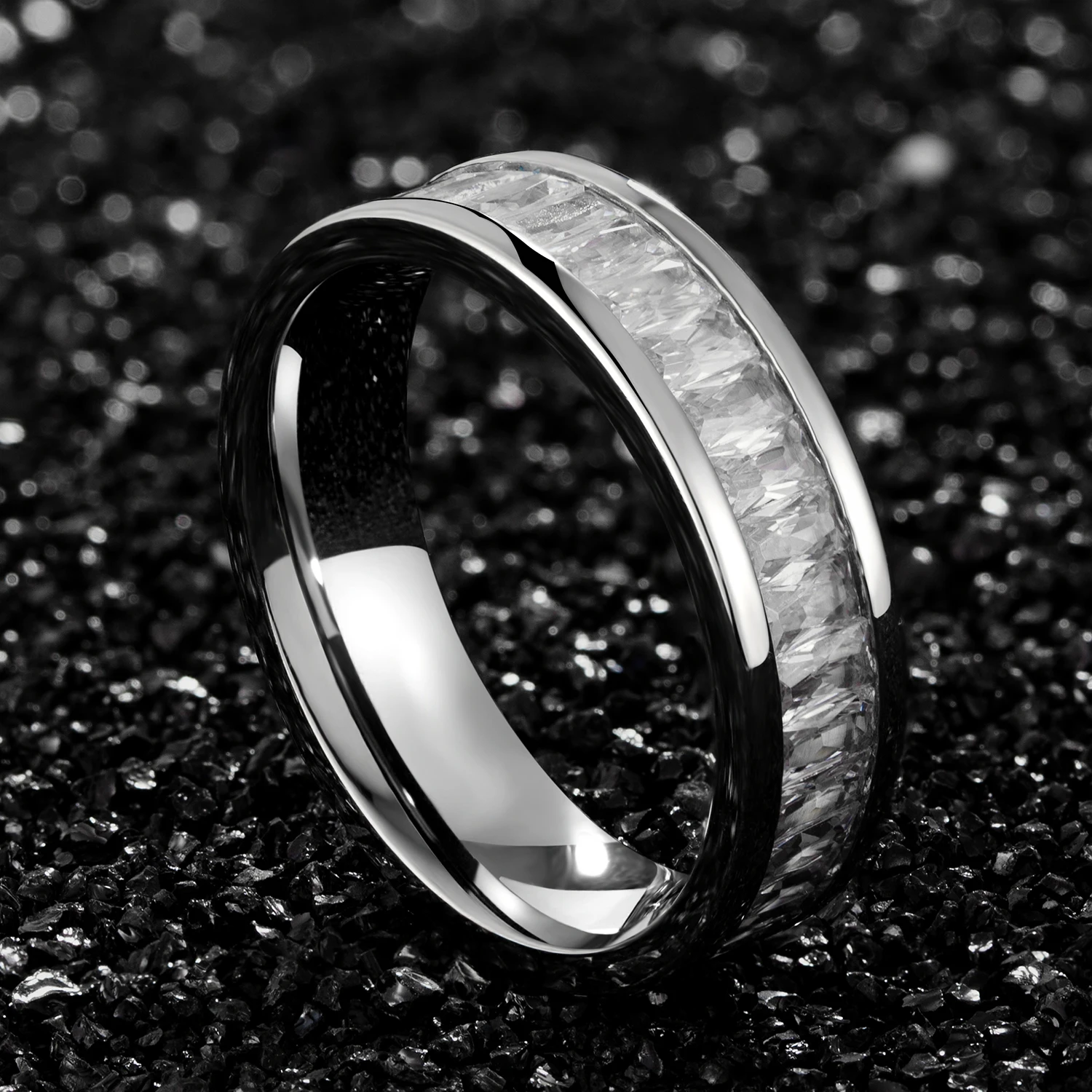 • Manufacturer Custom Zircon Crystal Inlay 8mm Stainless Steel Fashion Cubic Zirconia Rings