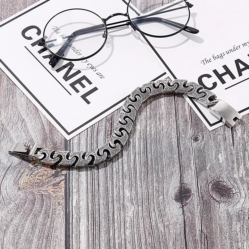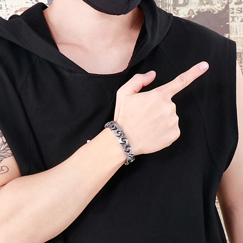 • Men 220mm Silver/grey Punk Stainless Steel Links Bracelet