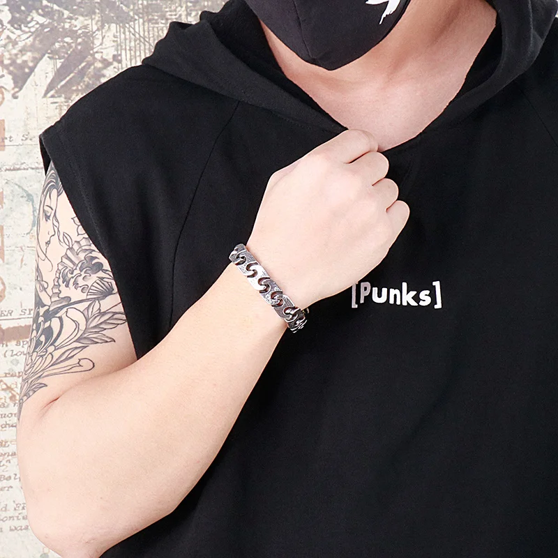 Men 220mm Silver/grey Punk Stainless Steel Links Bracelet