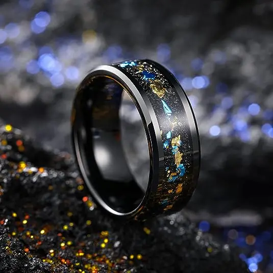 • Men Luxury Tungsten Fashion Ring Inlay Opal Men Tungsten Carbide Wedding Rings