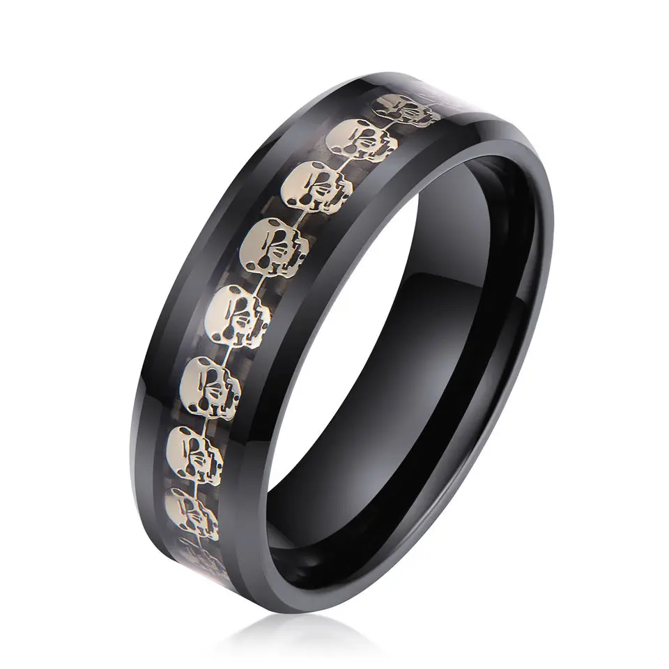 • Men's 8mm Steampunk Butterflies Wedding Band Black Tungsten Carbon Fiber Inlay Ring for Men