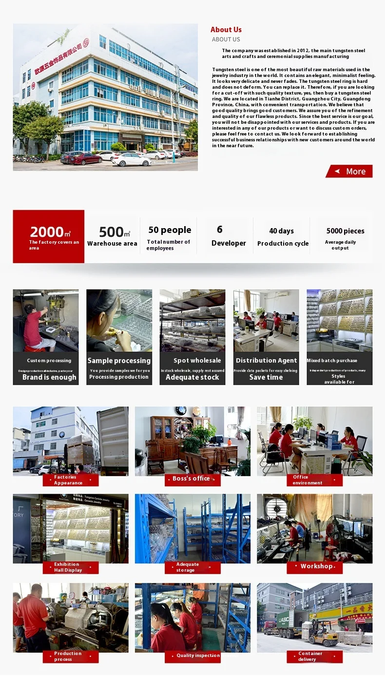 Guangzhou Ouyuan Hardware Jewelry Co., Ltd. is a large manufacturer which integrates design and manufacture. We are specialized in manufacturing various tungsten carbide jewelry, ceramic jewelry, titanium jewelry and stainless steel jewelry. We welcome customers, business associations and friends from all parts of the world to contact us and seek cooperation for mutual benefits.