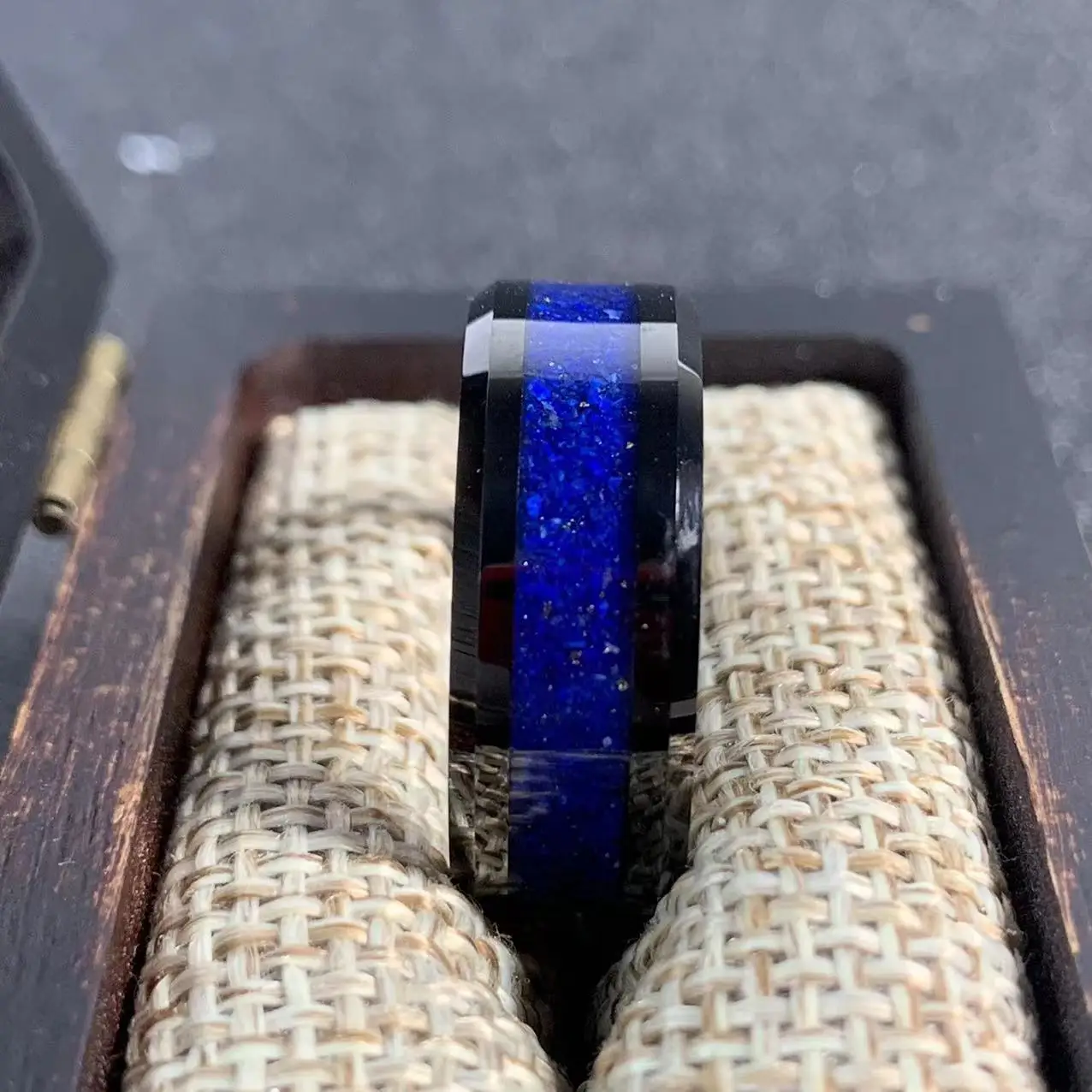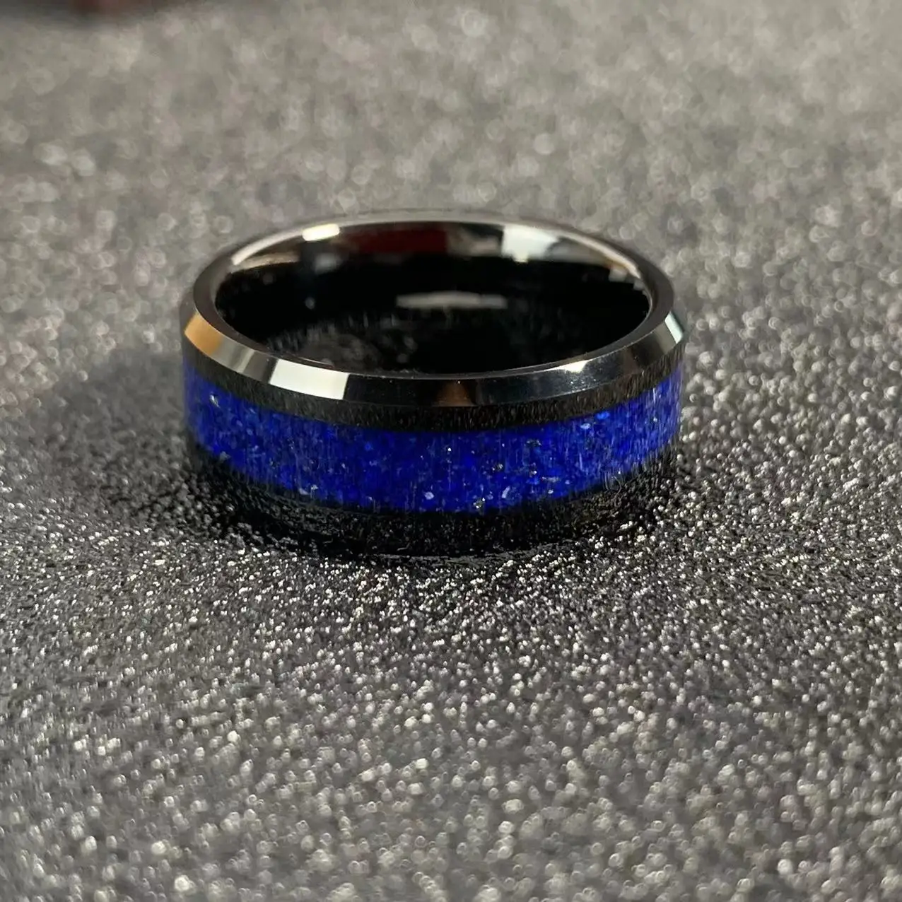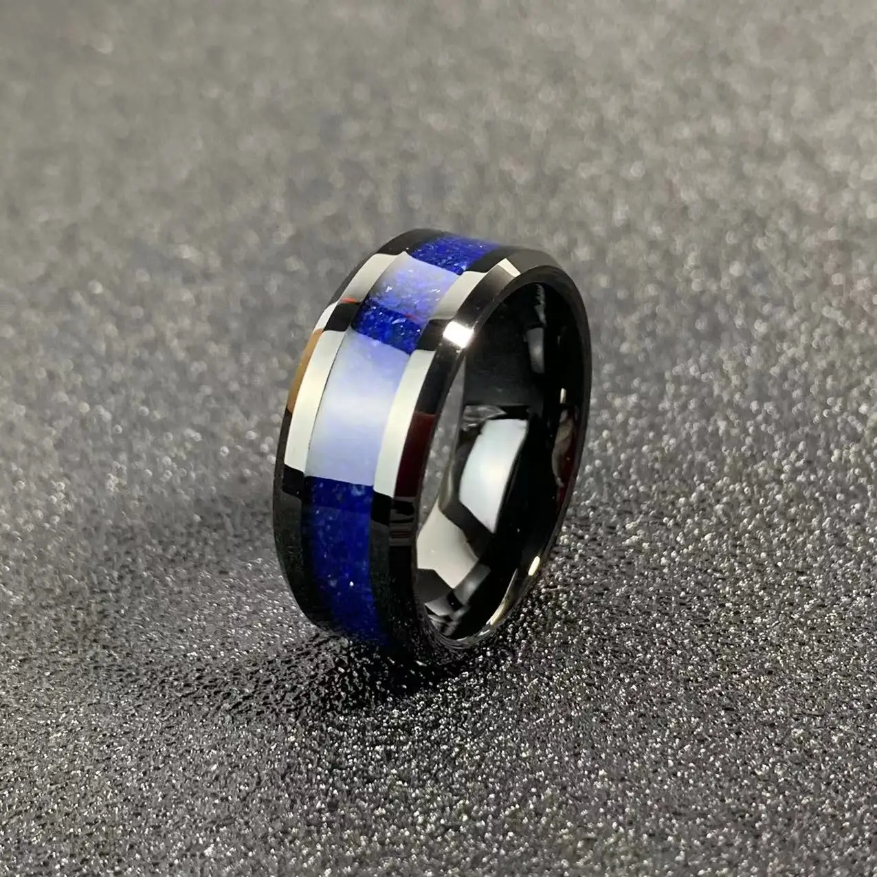 • Men's Daily Wear Rings Lapis Lazuli Stone Inlay Tungsten Carbide Rings for Men