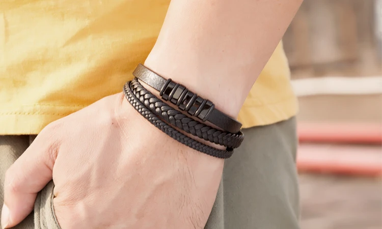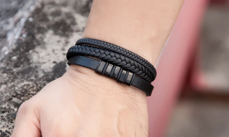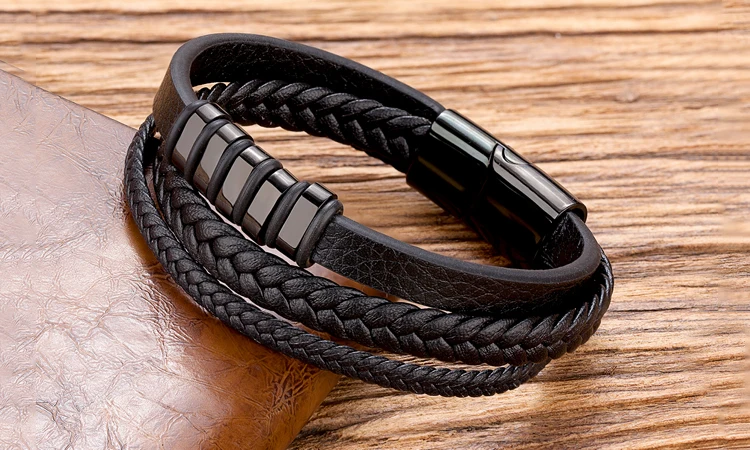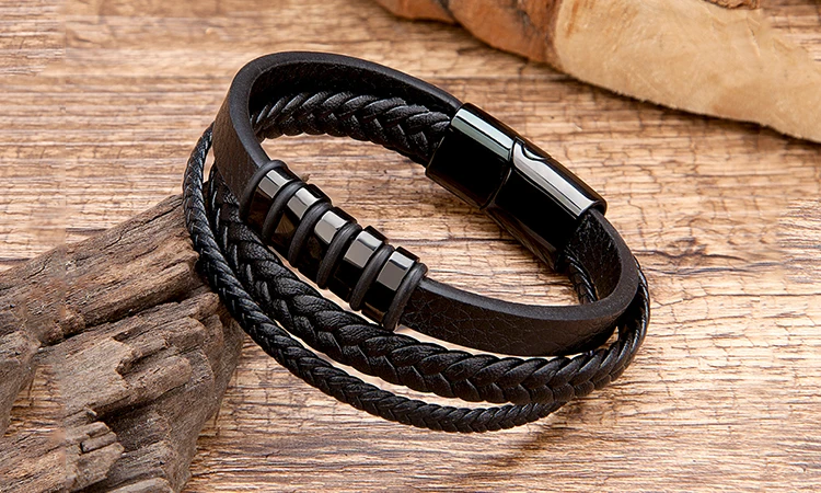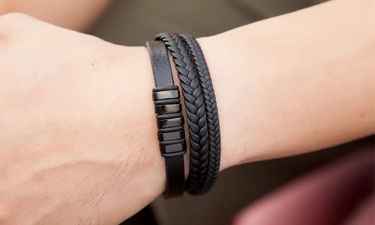 Item Model | Men's Multi-Strand Braided Leather Chain Bracelet with Magnetic Closure |