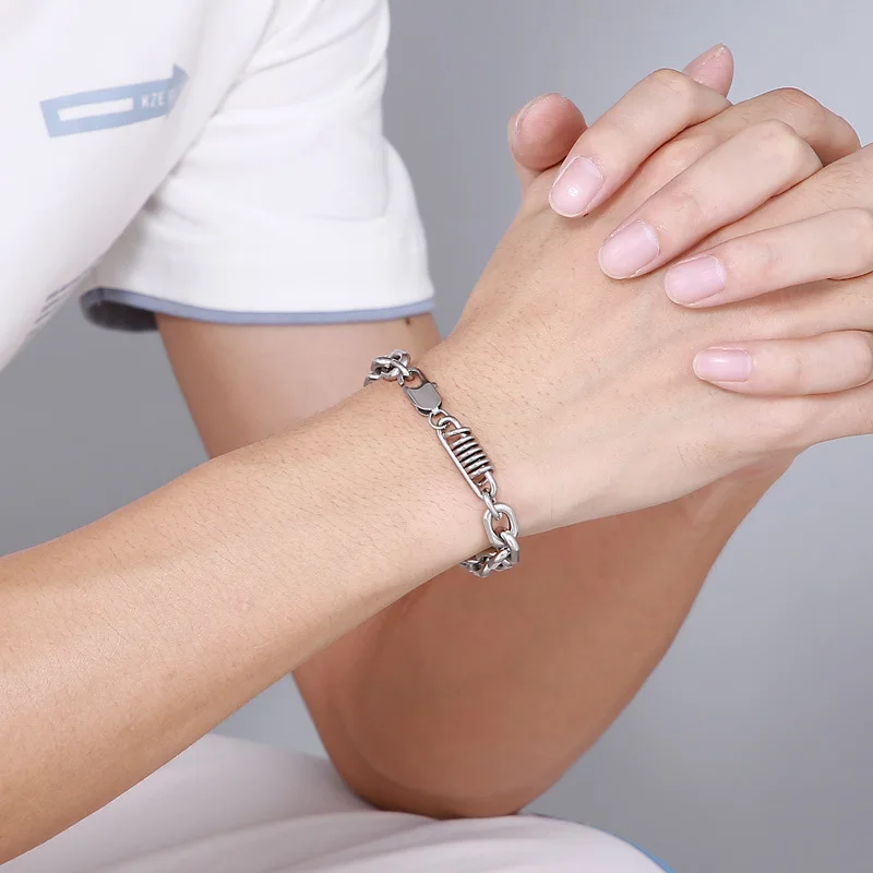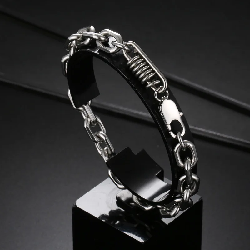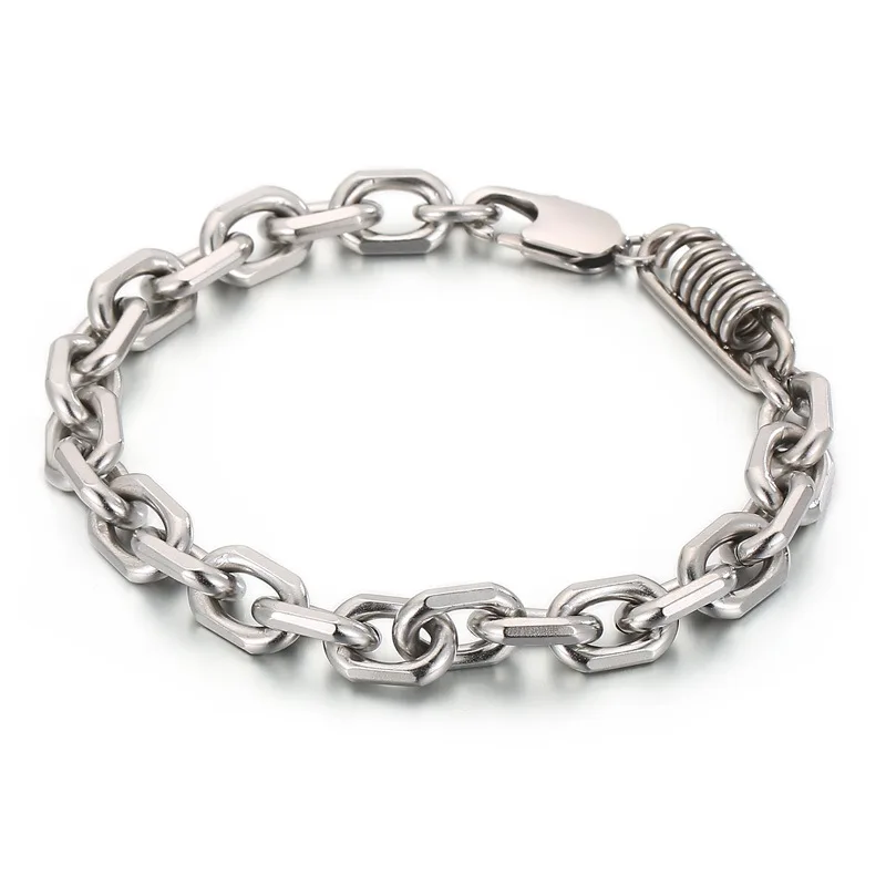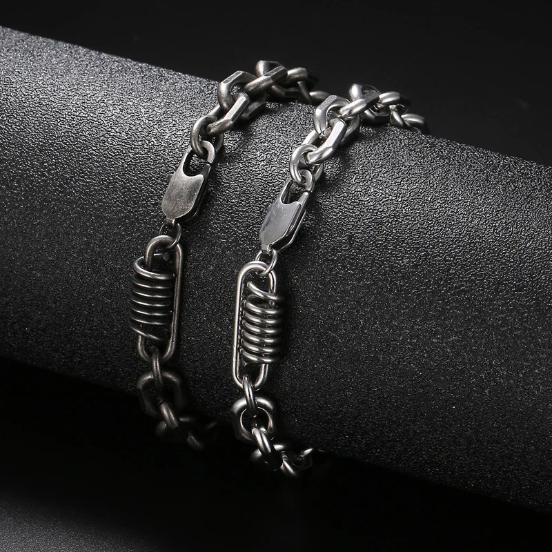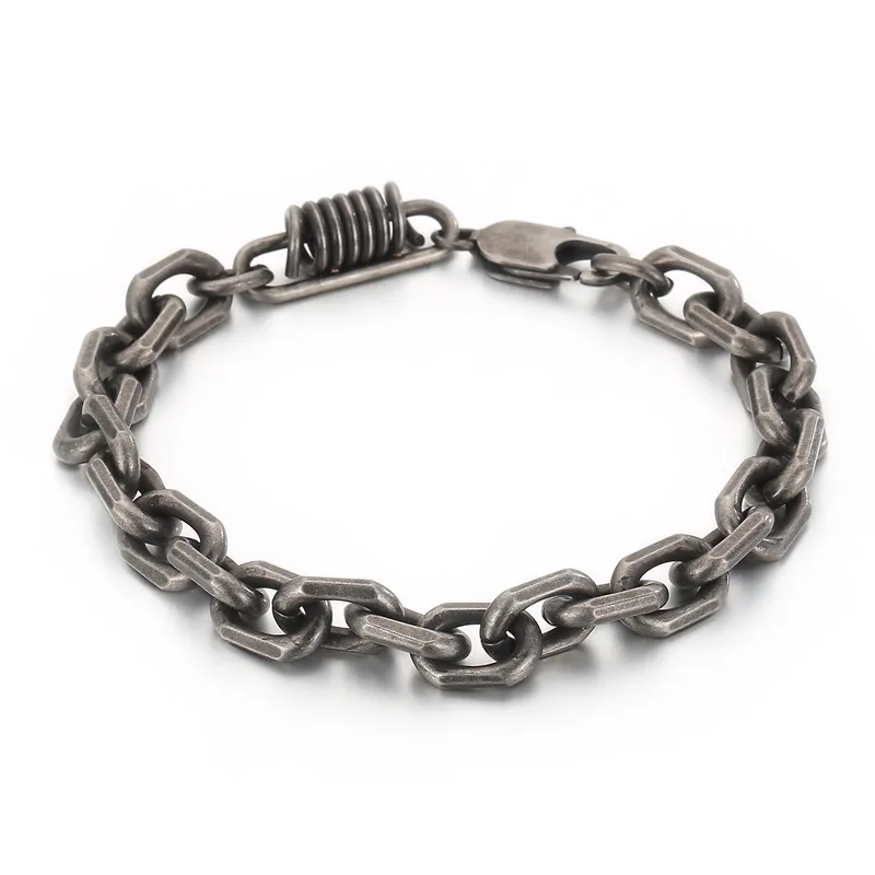 • Mens Punk Stainless Steel Ot Clasp Links Bracelet With Skull Charms
