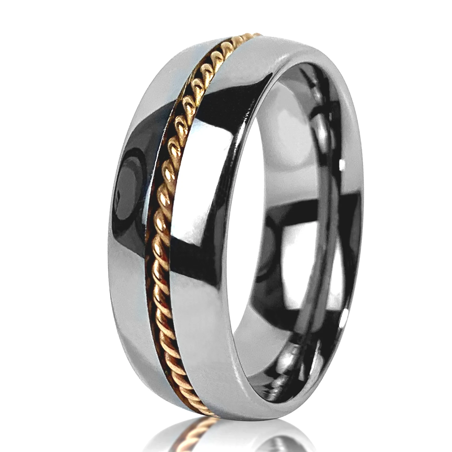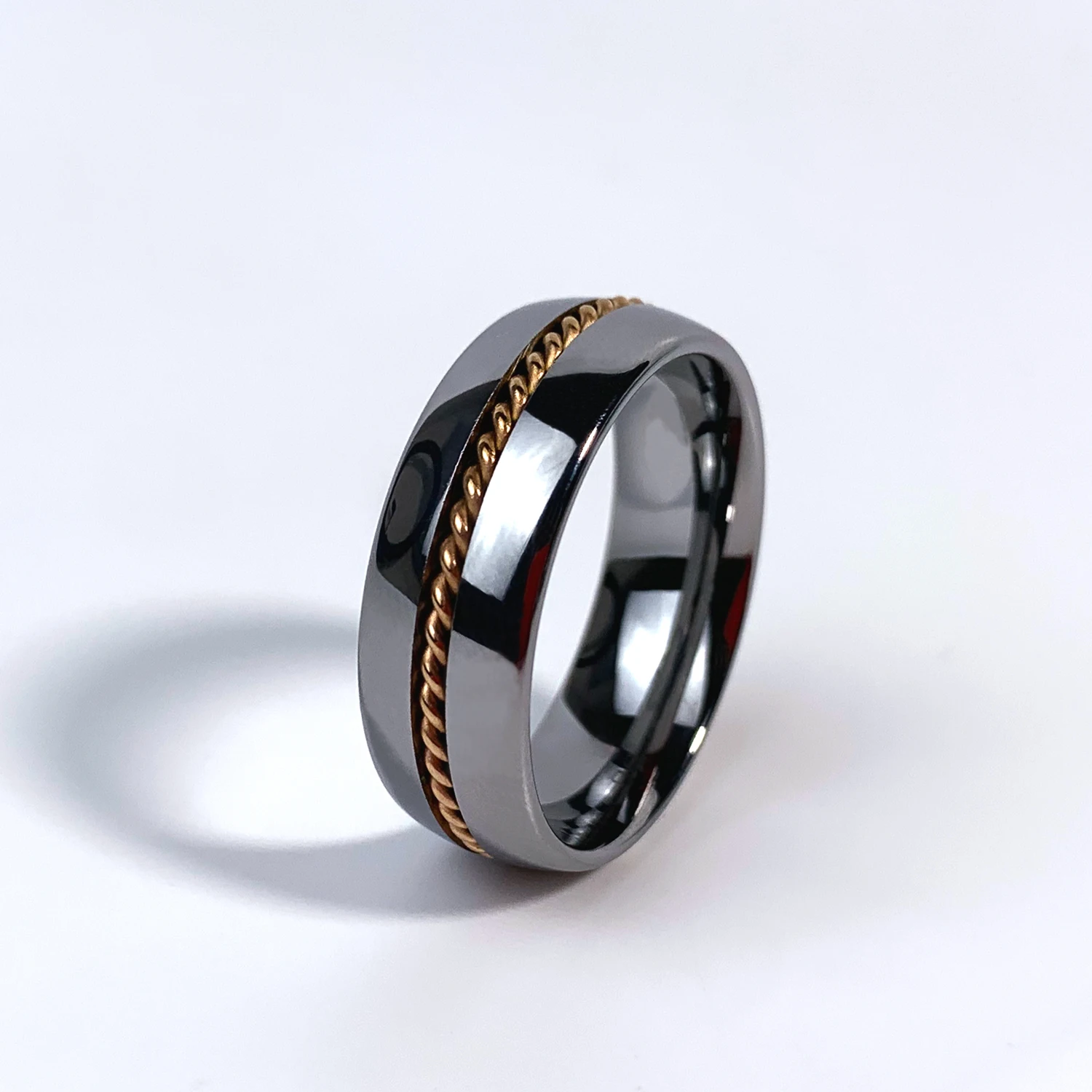 • Men's Tungsten Ring Gold Guitar String Inlay Classic Casual Romantic Fashionable Silver Engagement Party Anniversary Free