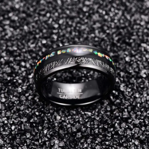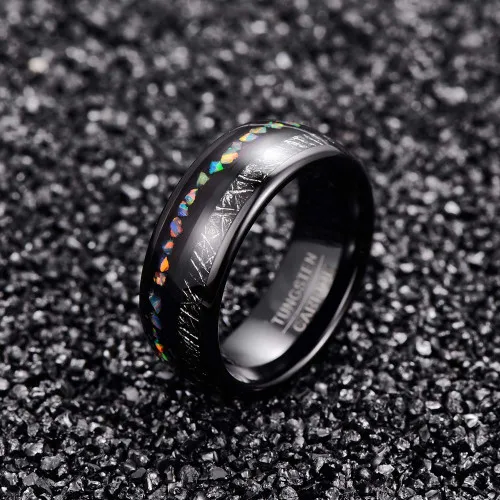 • Mens Tungsten Wedding Rings 8mm Galaxy Opal Inlay Black Tungsten Carbide Ring Engagement Band Comfort Fit Size 6-13