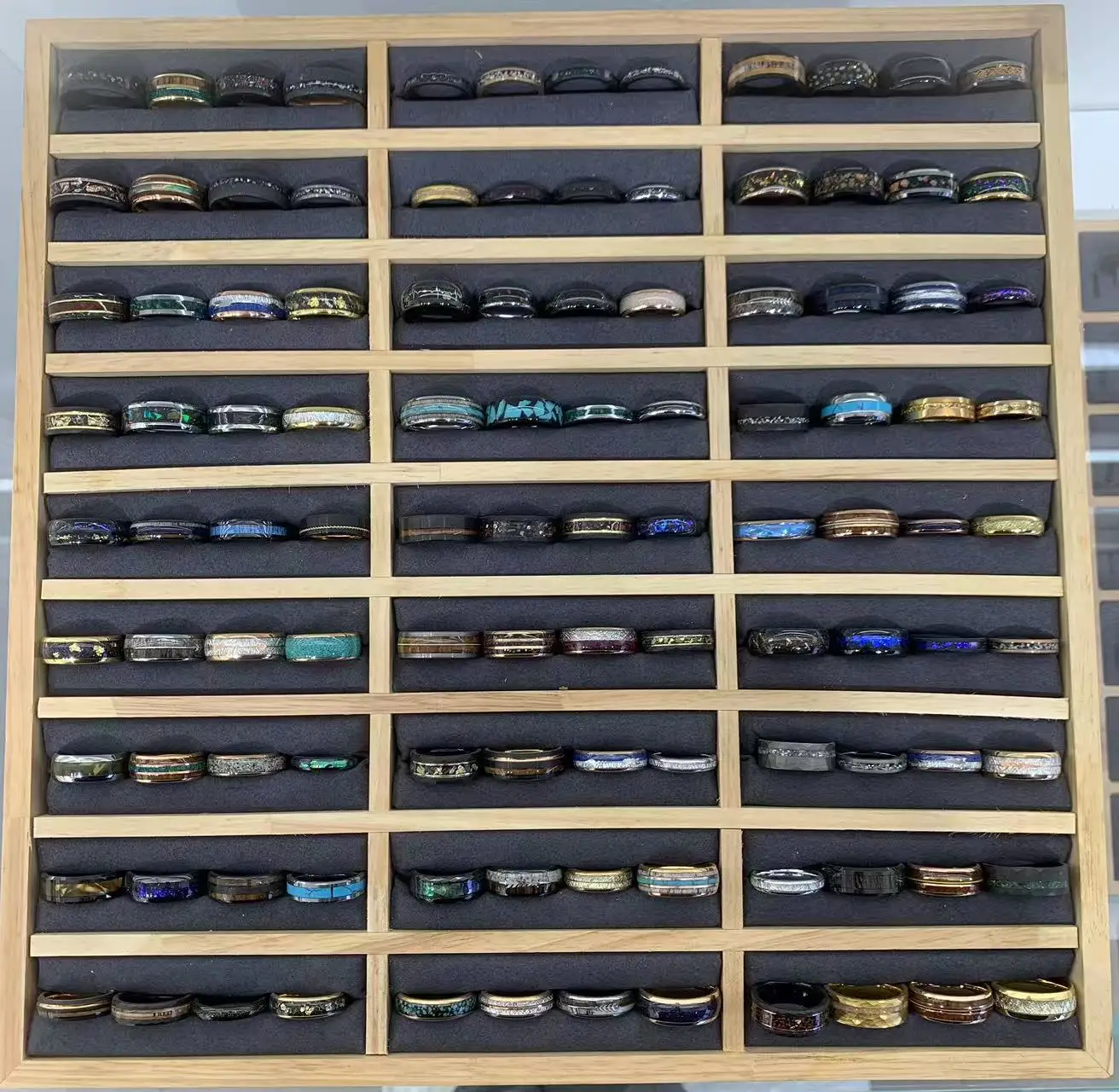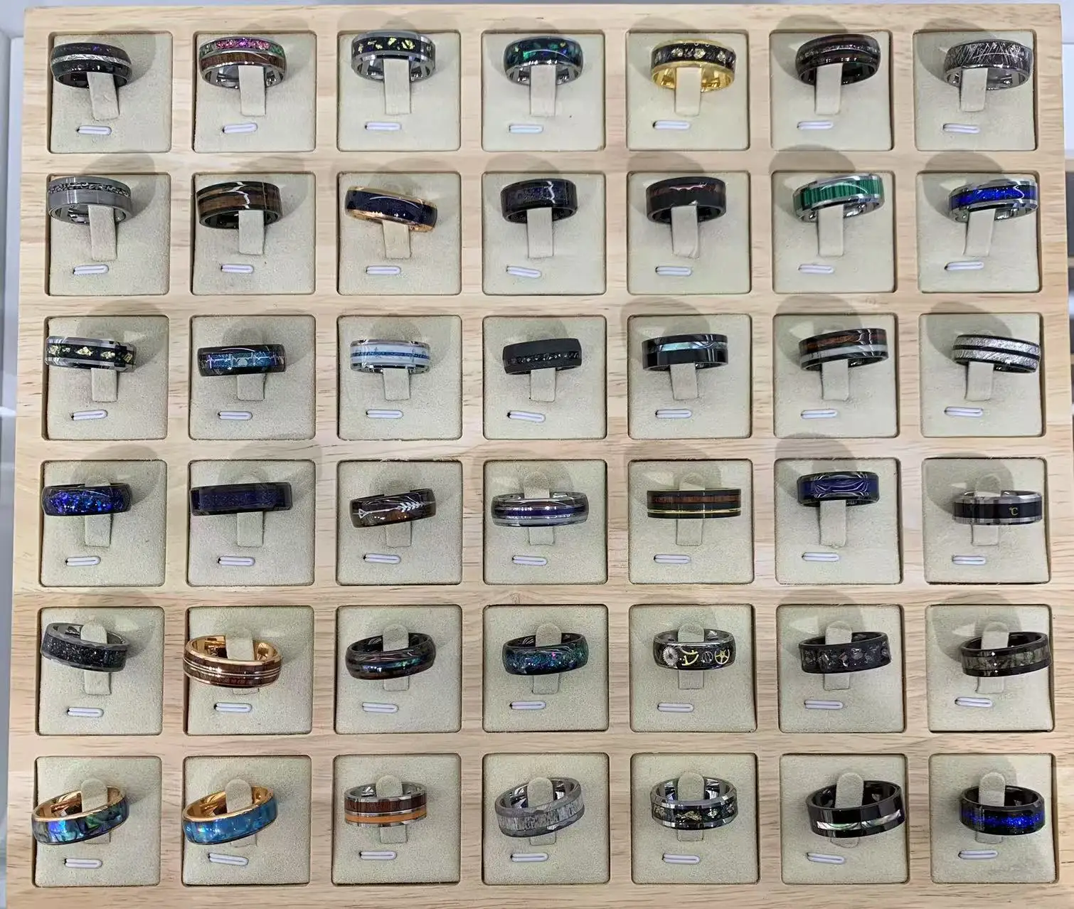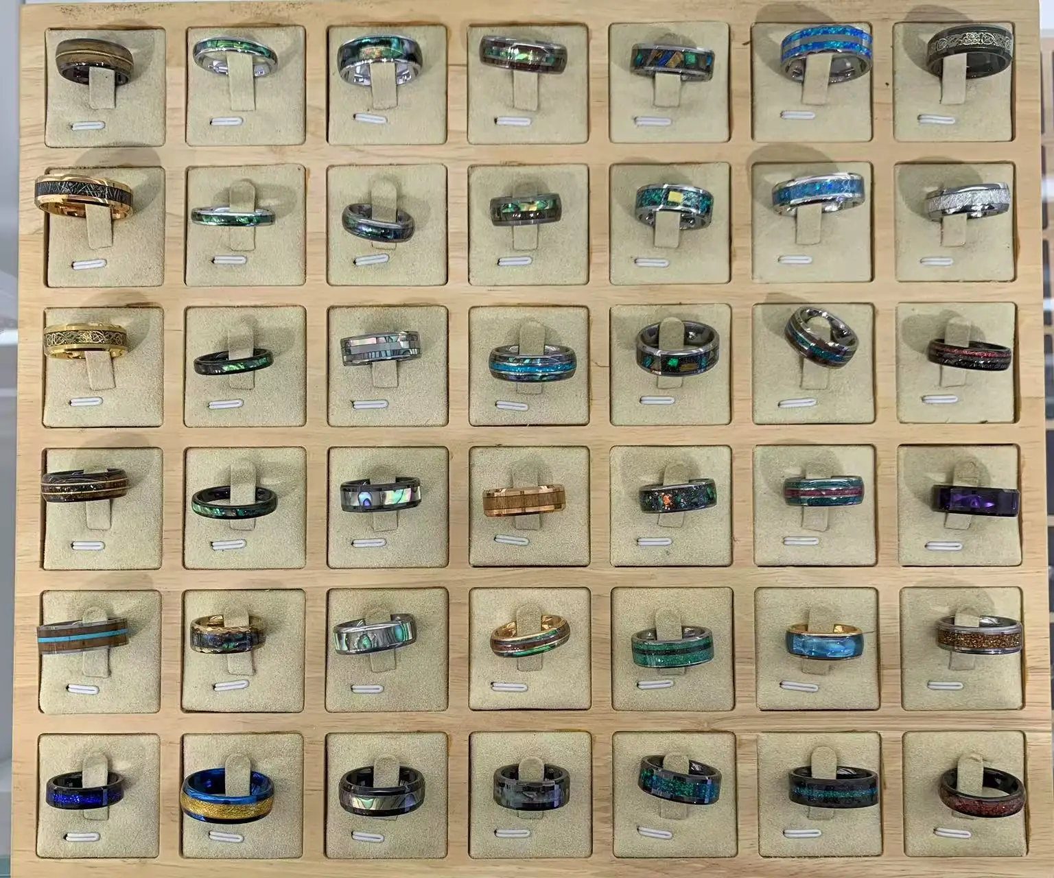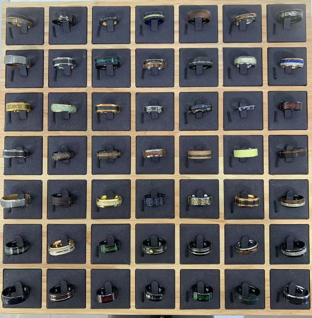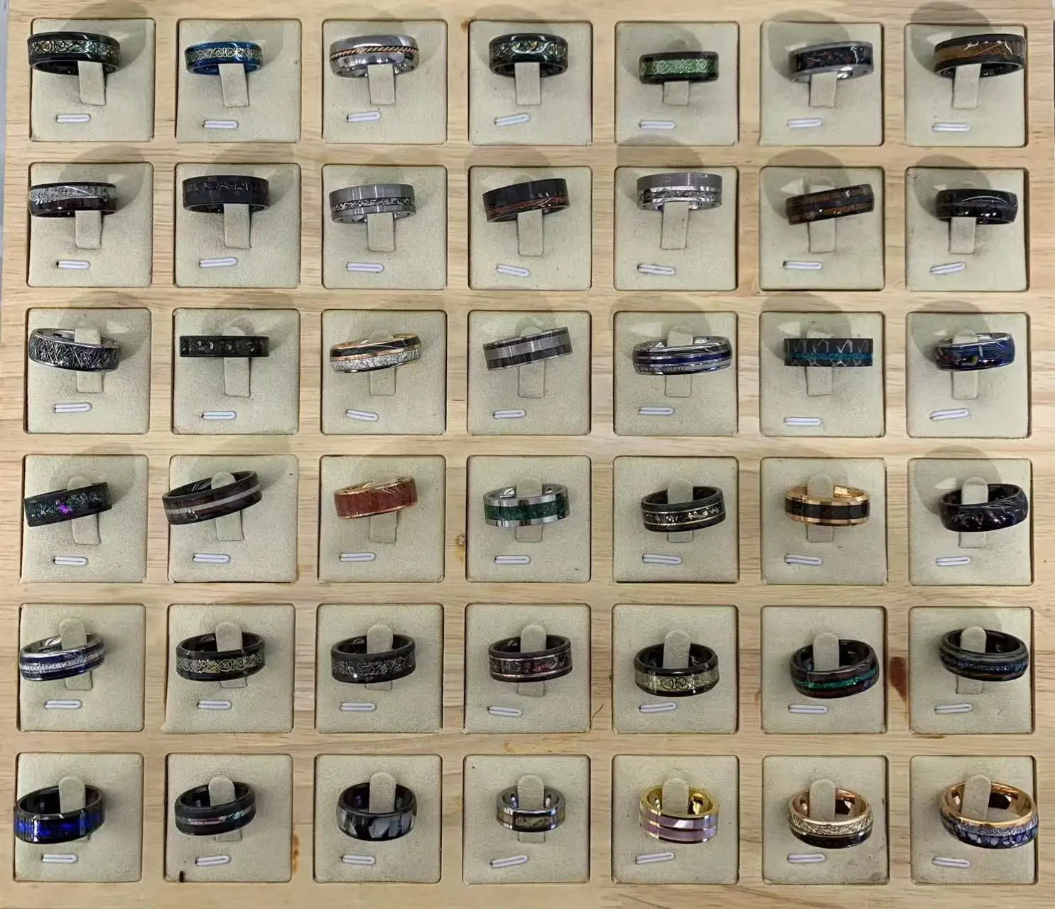 New design wood stripe sticker set ring with tungsten ring prices
