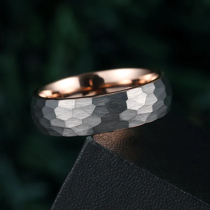 • Men's & Women's Hammered Surface Engagement Bands 18K Rose Gold Plated Tungsten Wedding Ring Classic Style for Male Female Gift