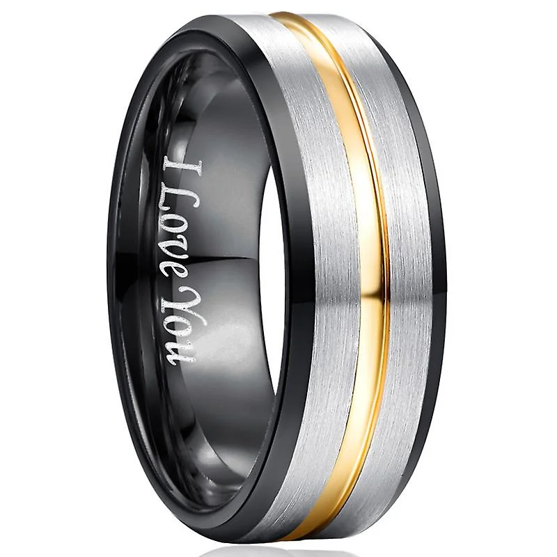 Item Model | New Design Fashion Jewelry Grooved Brushed Tungsten Ring Black Men Rings For Valentine's Day Gifts |