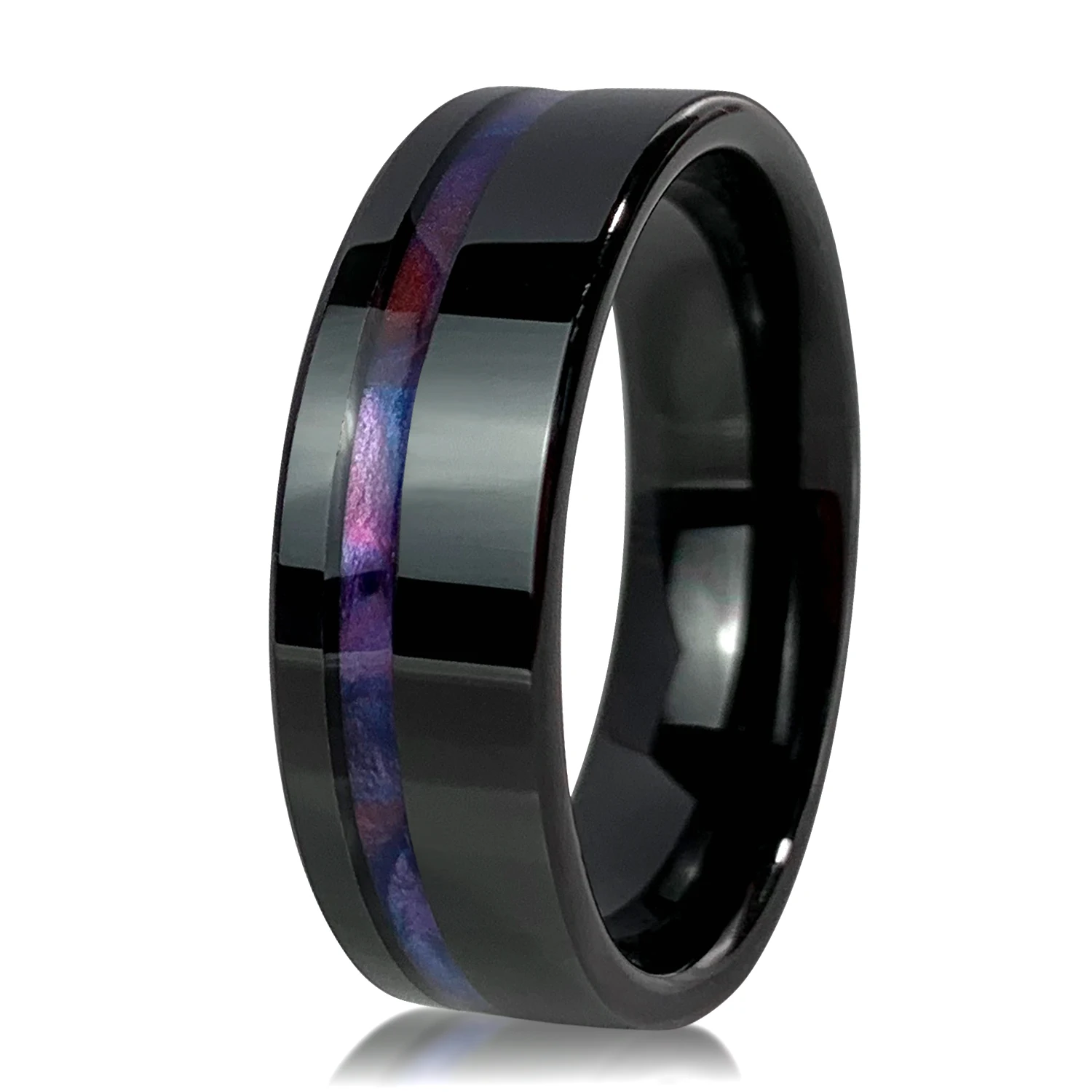 • New Design Jewelry 8mm Black Tungsten Ring PVC rainbow Couple Mens Wedding Rings