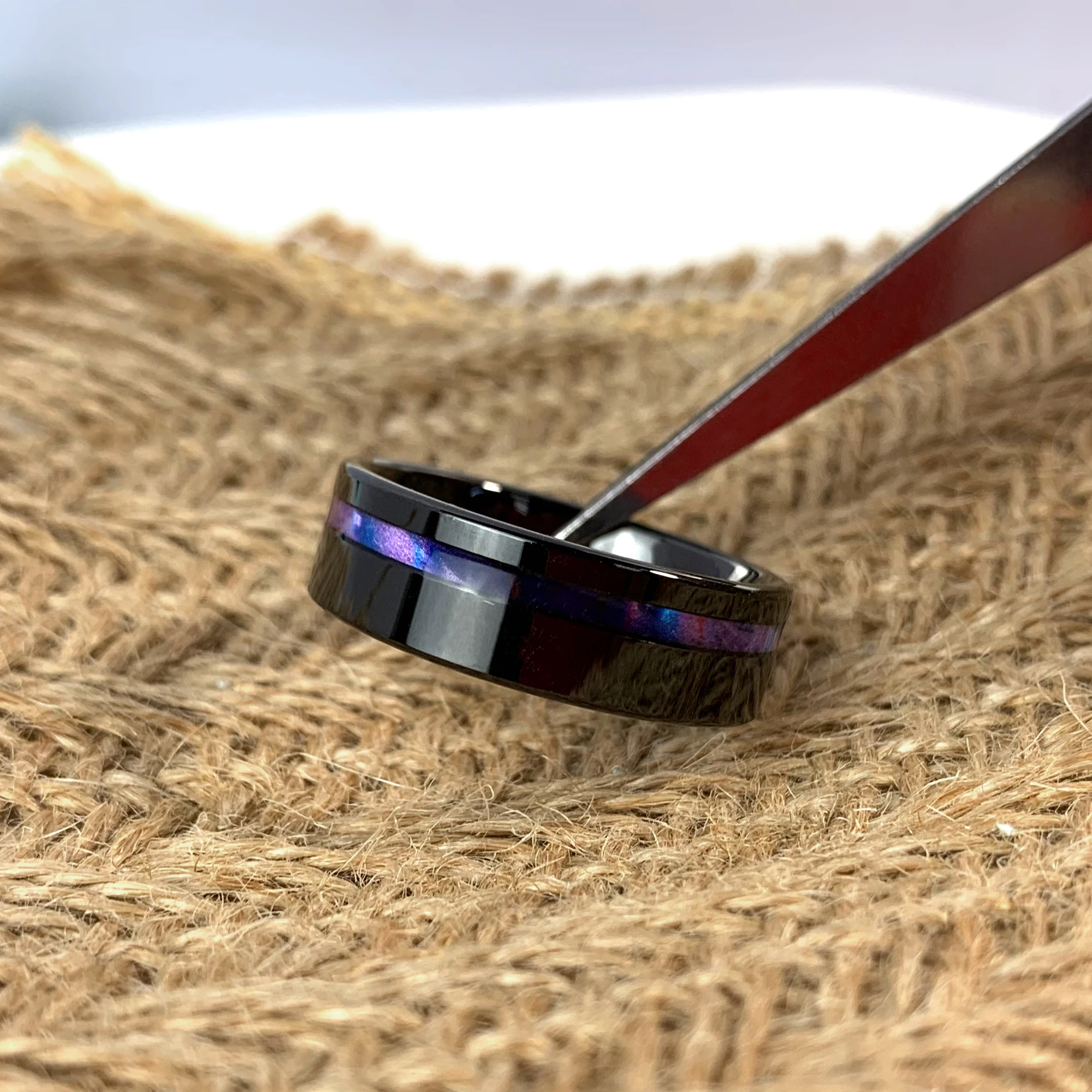 New Design Jewelry 8mm Black Tungsten Ring PVC rainbow Couple Mens Wedding Rings