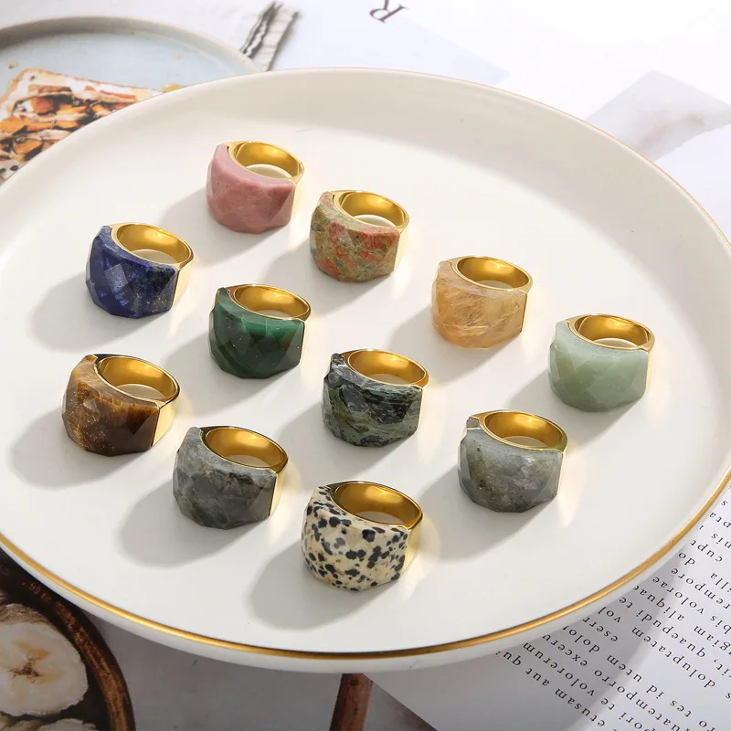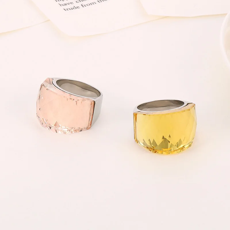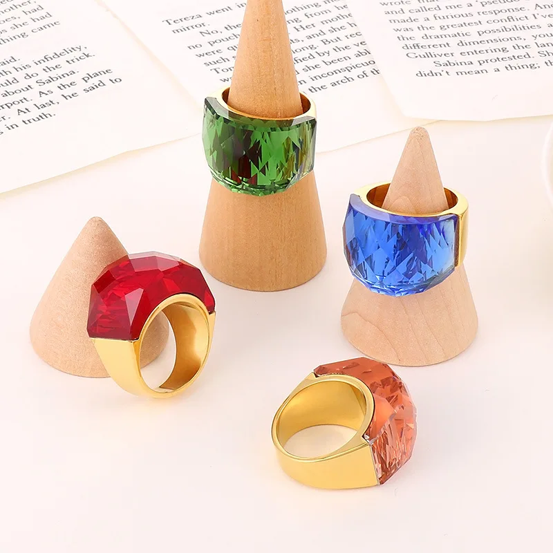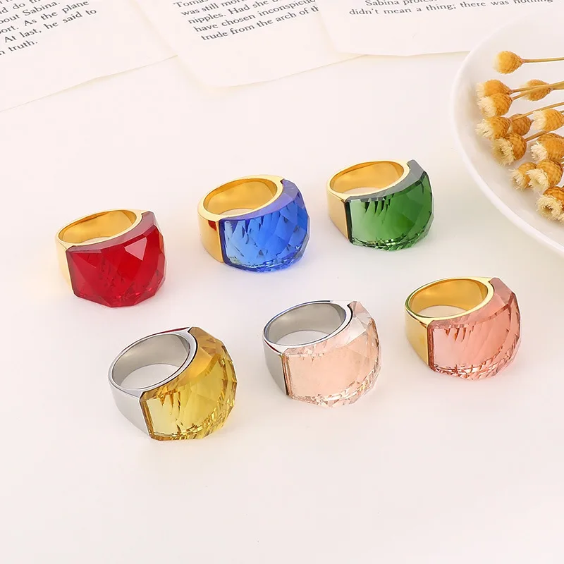 New Fashion Crystal Glass Multi-color Ring Stainless Steel Plated 18k Gold Steel Cool Ring Jewelry Female Wholesale Spot