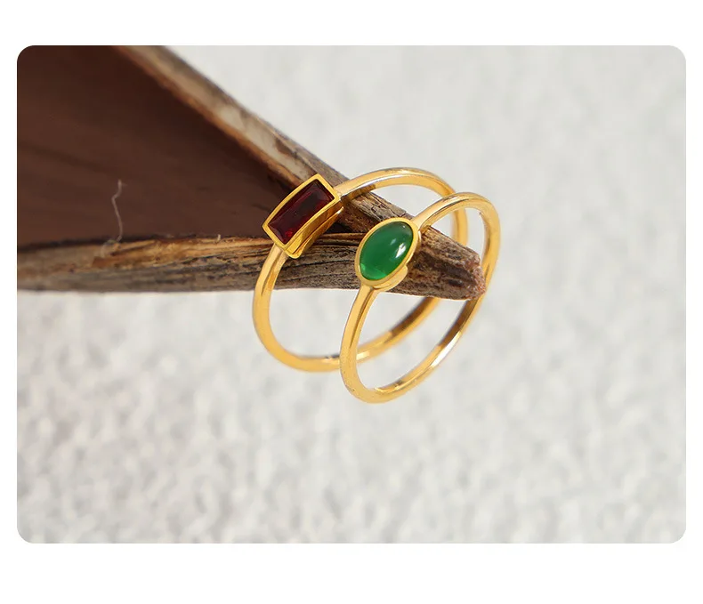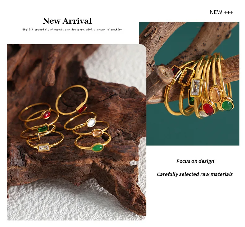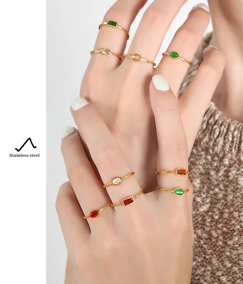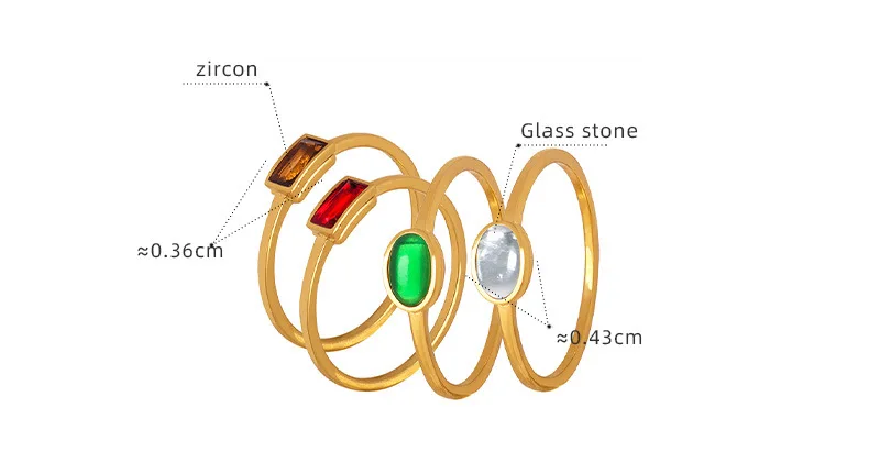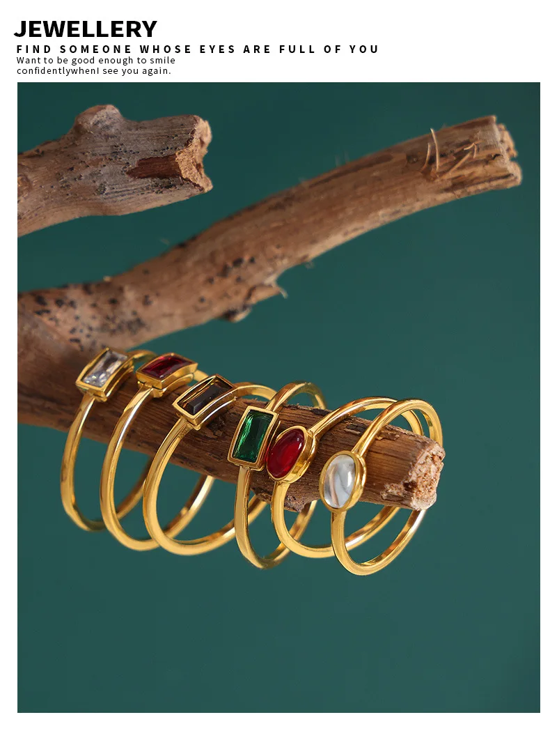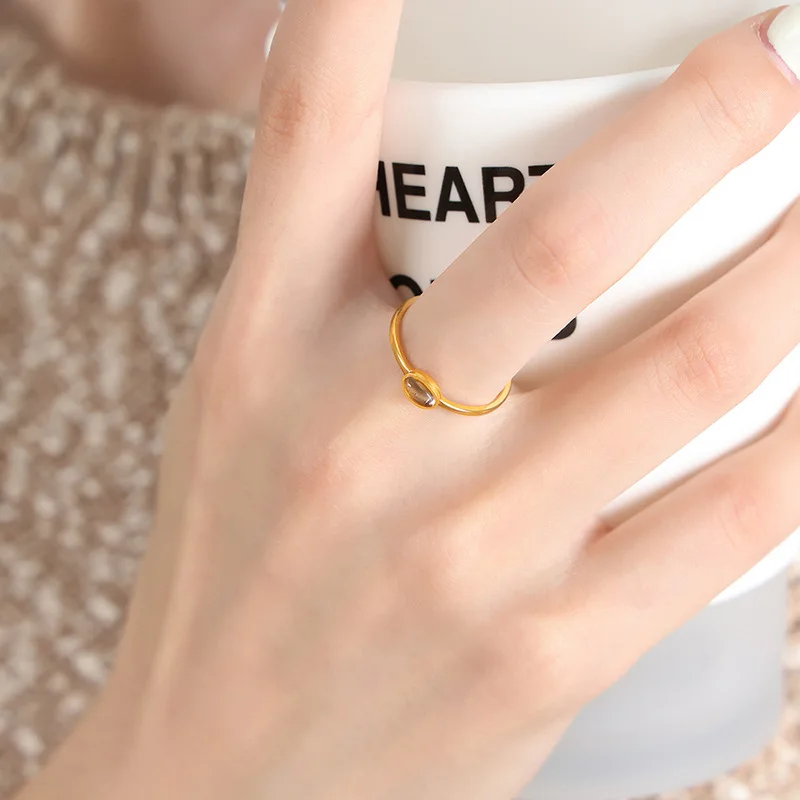 New Simple Fashion Waterproof Jewelry Gold Plated Stainless Steel Glass Stone Zircon Ring for Women