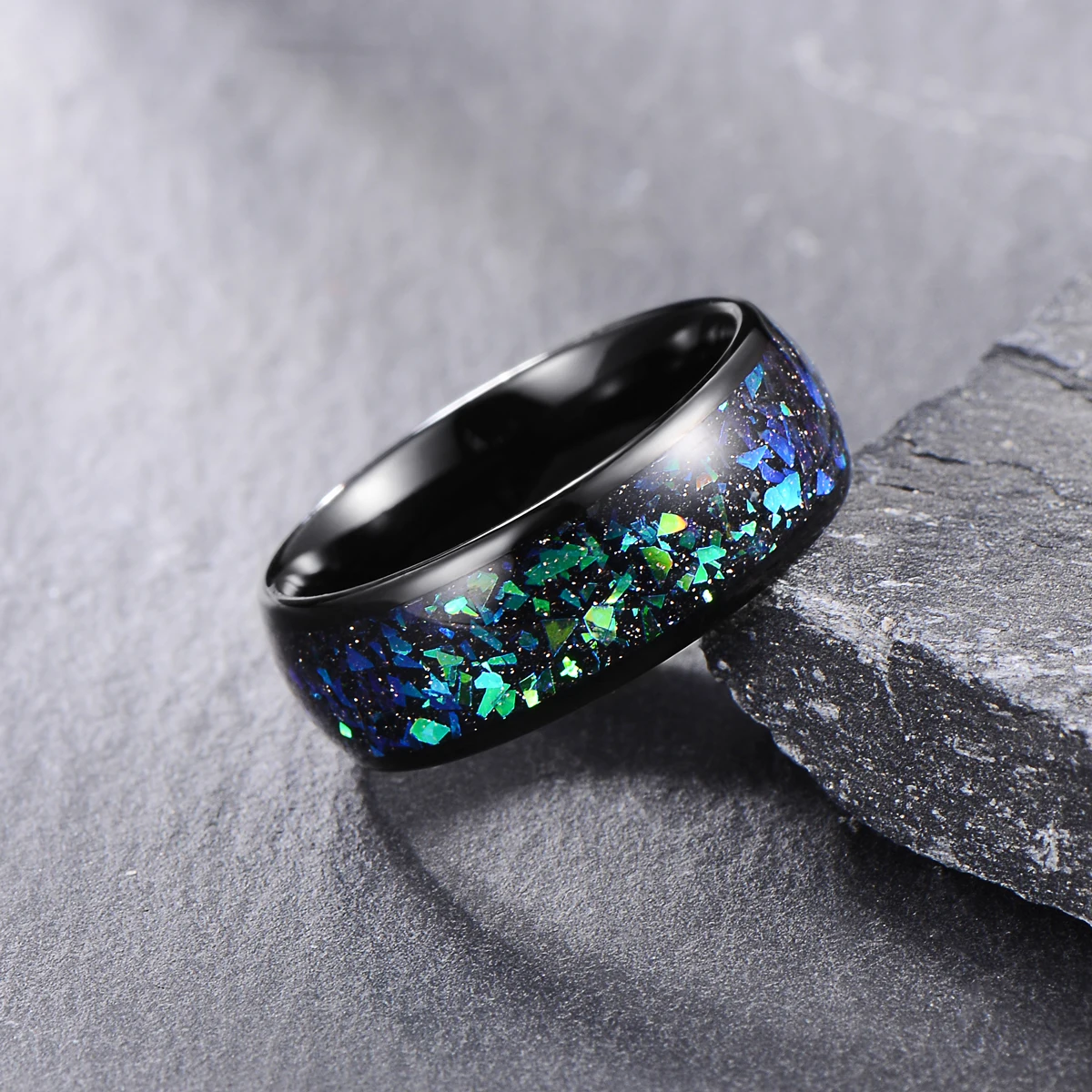 Our tungsten cock ring for men offers durable design and customizable OEM logo options, combining robust tungsten carbide with opal inlay for unique men custom rings. Wholesale tungsten rings available.
