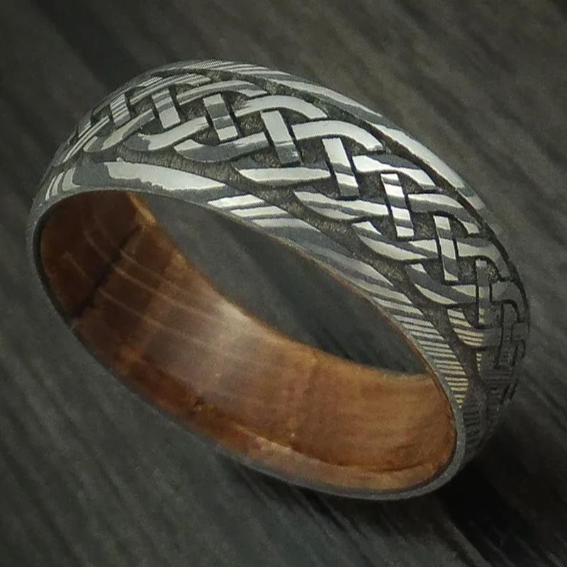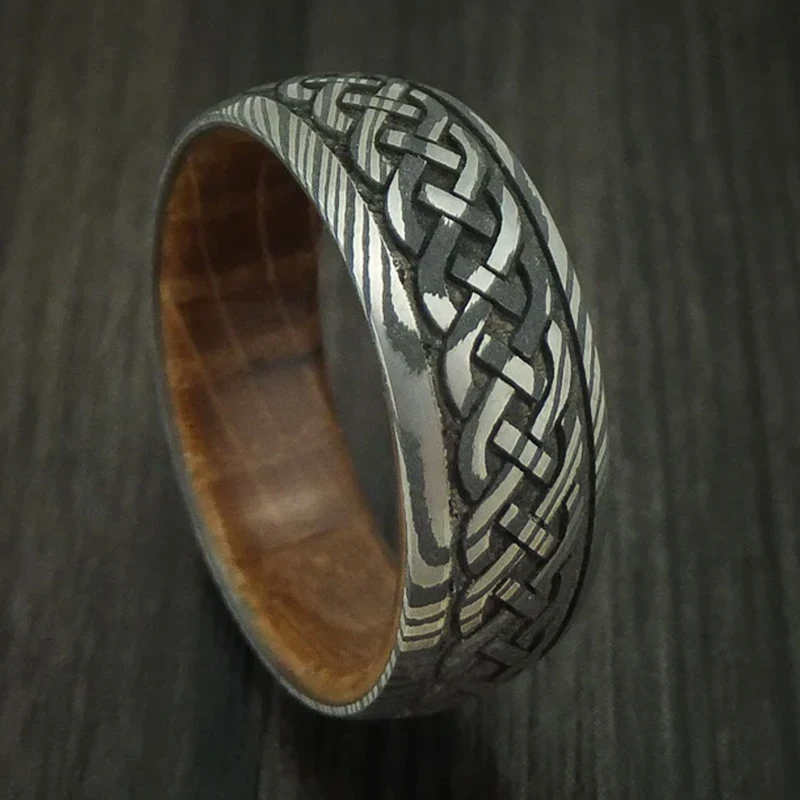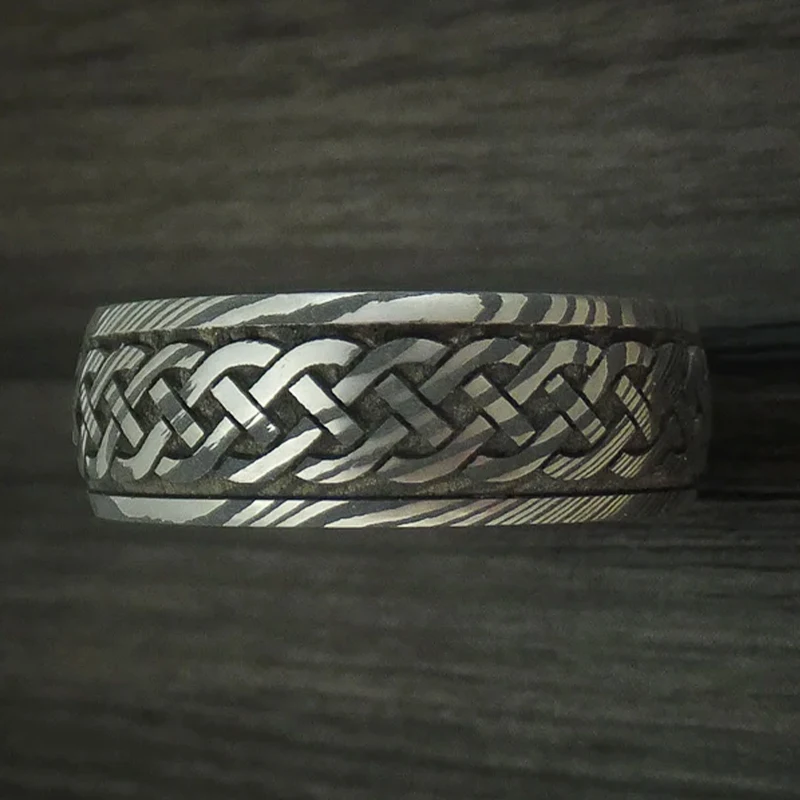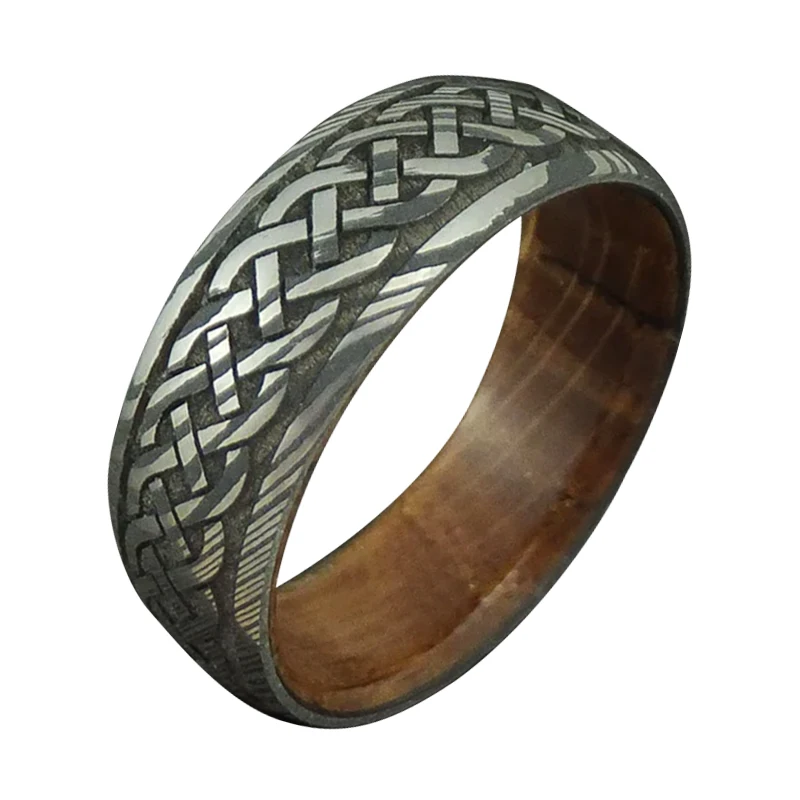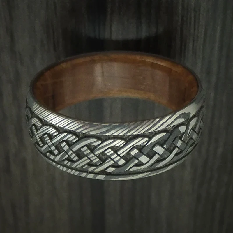 Item Model | Ouyuan Jewelry Luxury Damascus Steel Ring Inlay Wood Wedding Rings for men and women Couple |