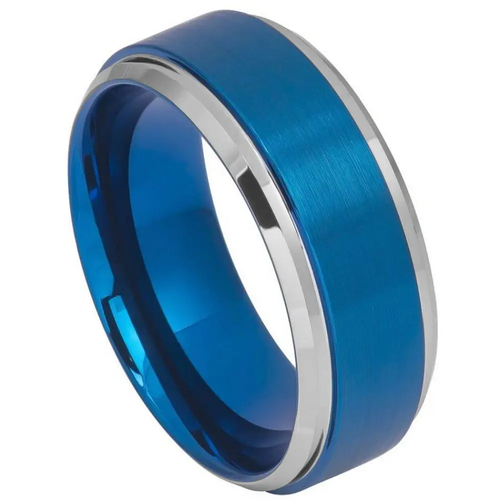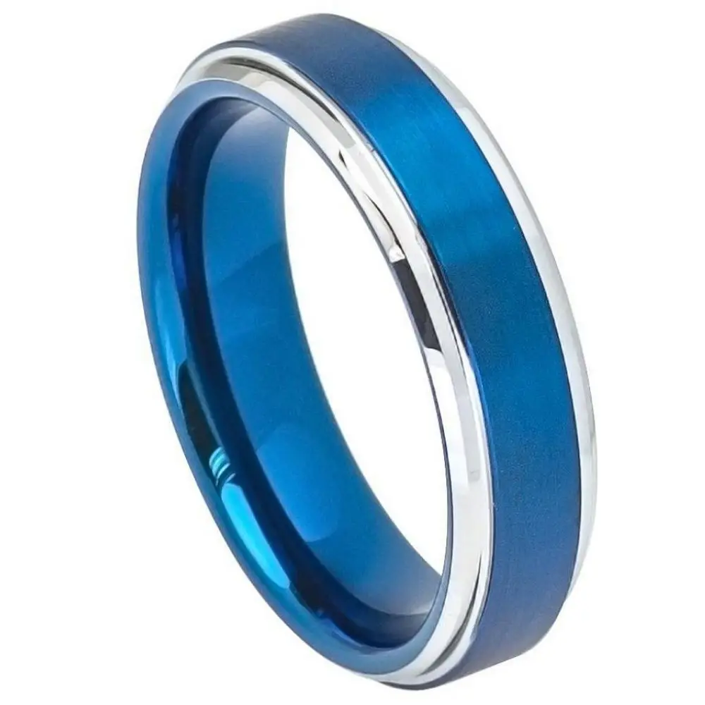 Item Model | Ouyuan Jewelry Blue Men's Jewelry Wholesale Groove Blue Plated Cross Tungsten Carbide Ring Jewelry |
