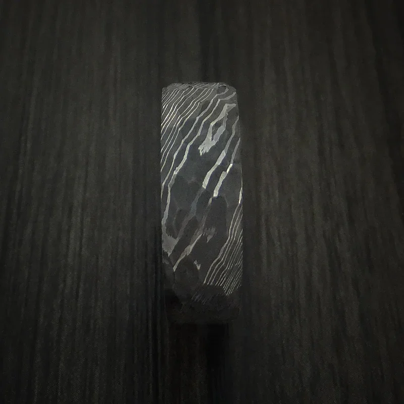 Item Model | Ouyuan Jewelry Mens Wedding Bands 8mm Black Damascus Steel Rings Blue Inner face Comfort Fit |